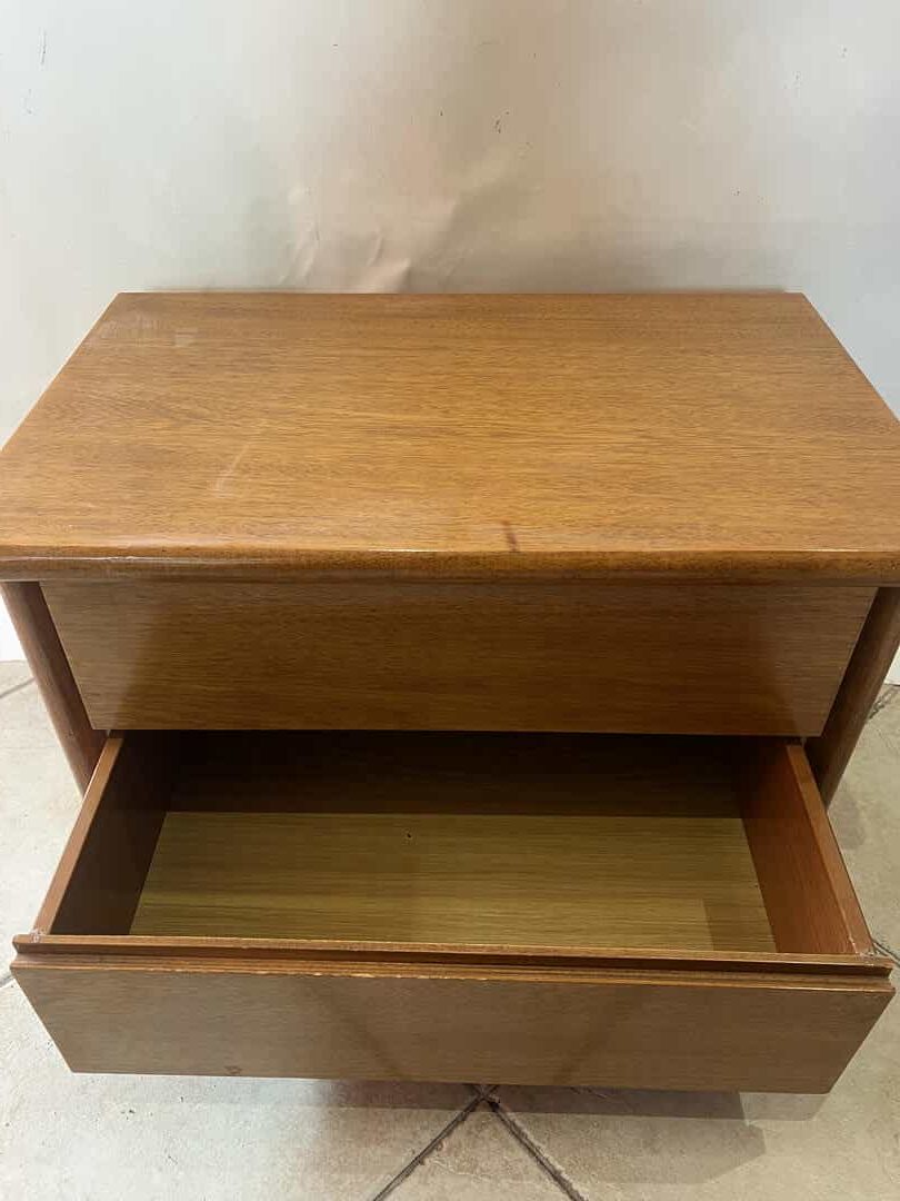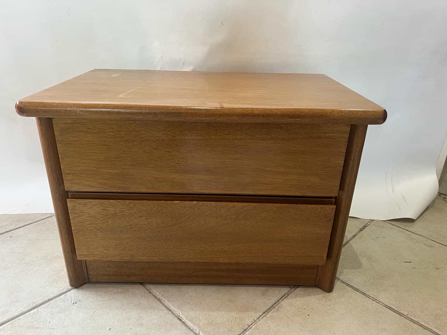 Vintage ξύλινο κομοδίνο από μασίφ ξύλο με δύο συρτάρια 42×63,5×40,5