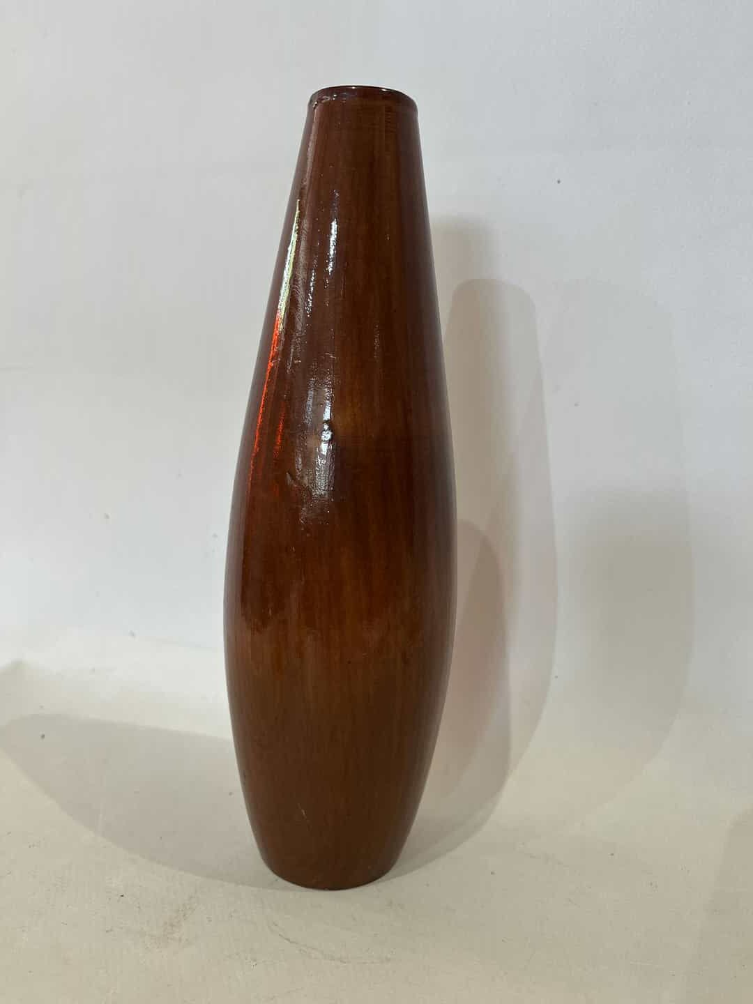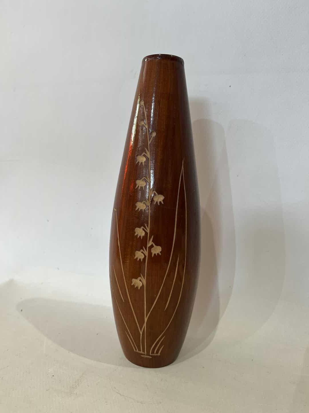 Vintage ξύλινο χειροποίητο βάζο με εγχάρακτα σχέδια 24×7