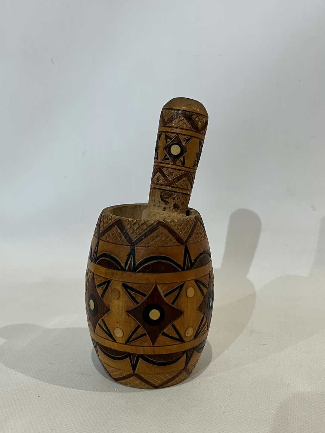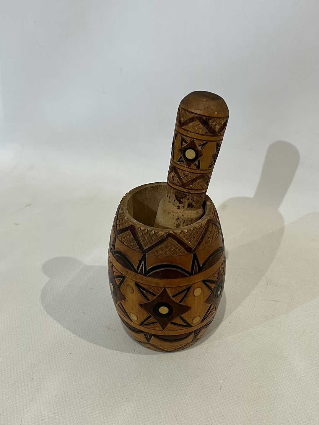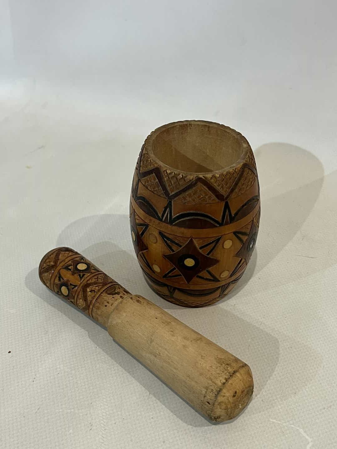 Vintage ξύλινο χειροποίητο γουδί 11×8 . Διαστάσεις γουδοχέρι: 15cm Κωδικός προϊόντος: #s9545