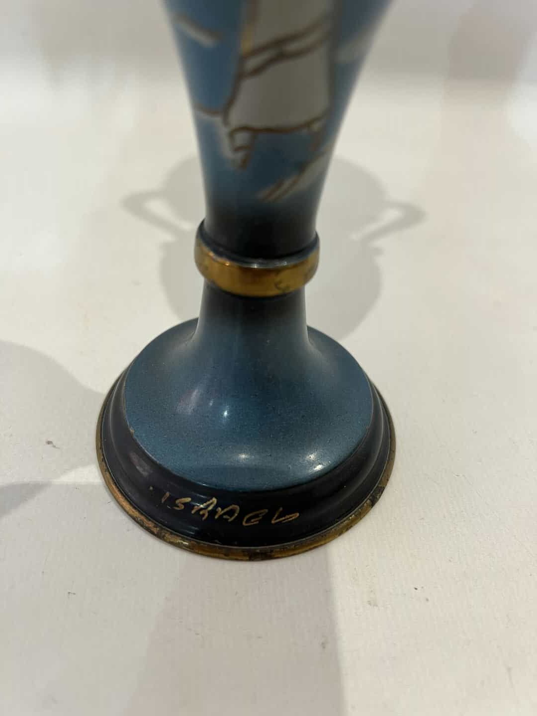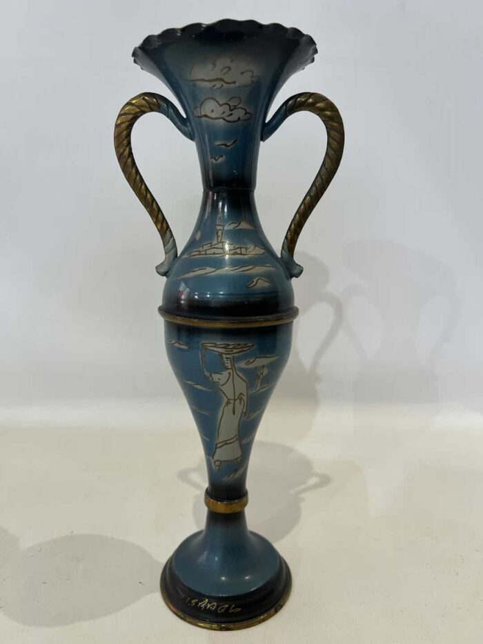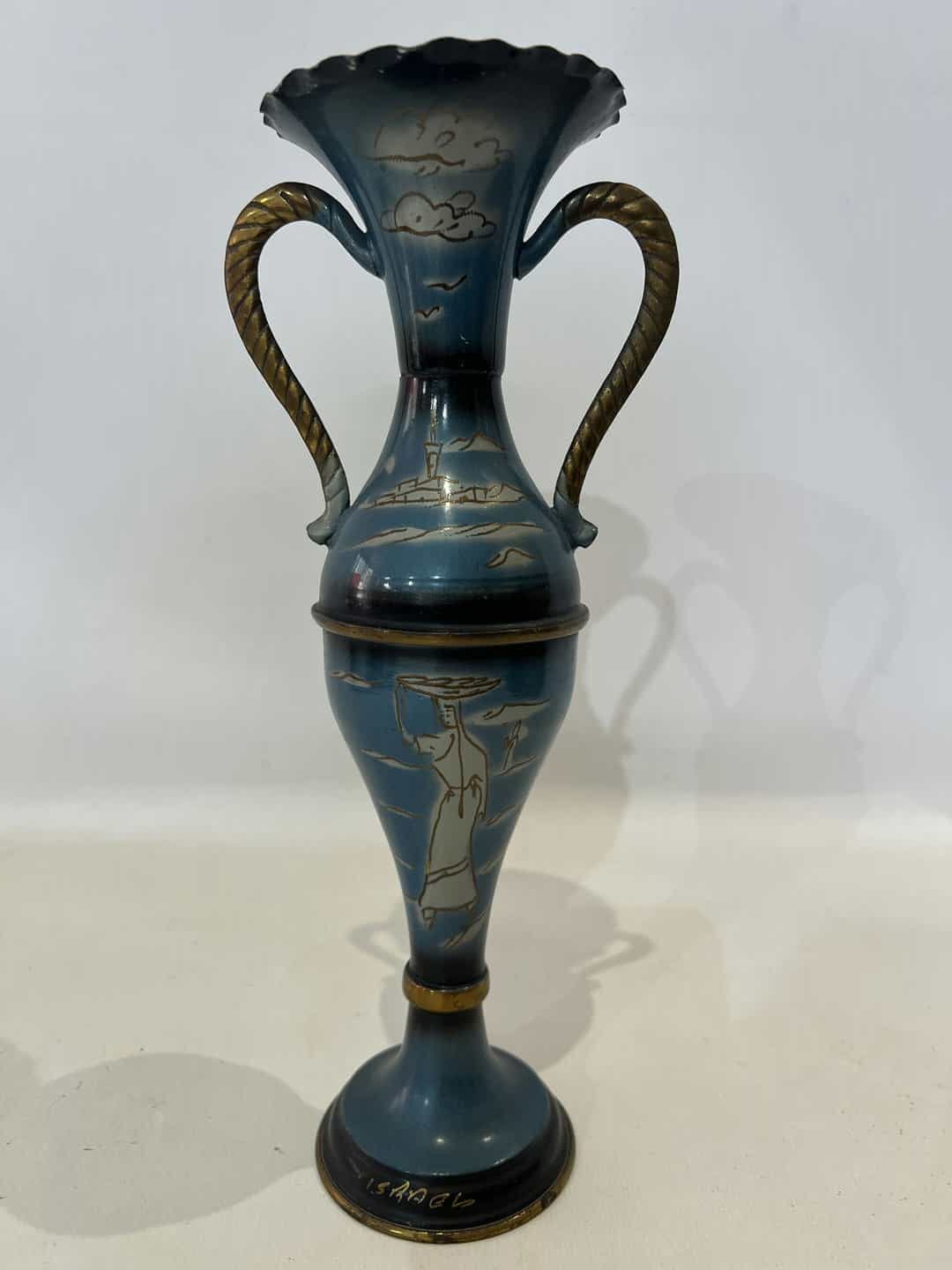 Vintage ορειχάλκινο χειροποίητο βάζο του 1960 Εβραικό 26×11 Κωδικός προϊόντος: #s15012