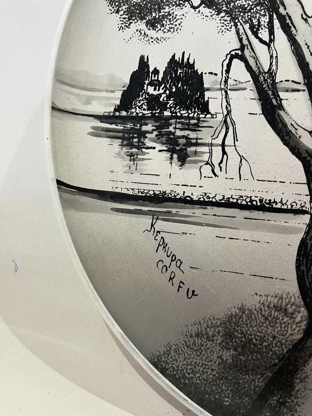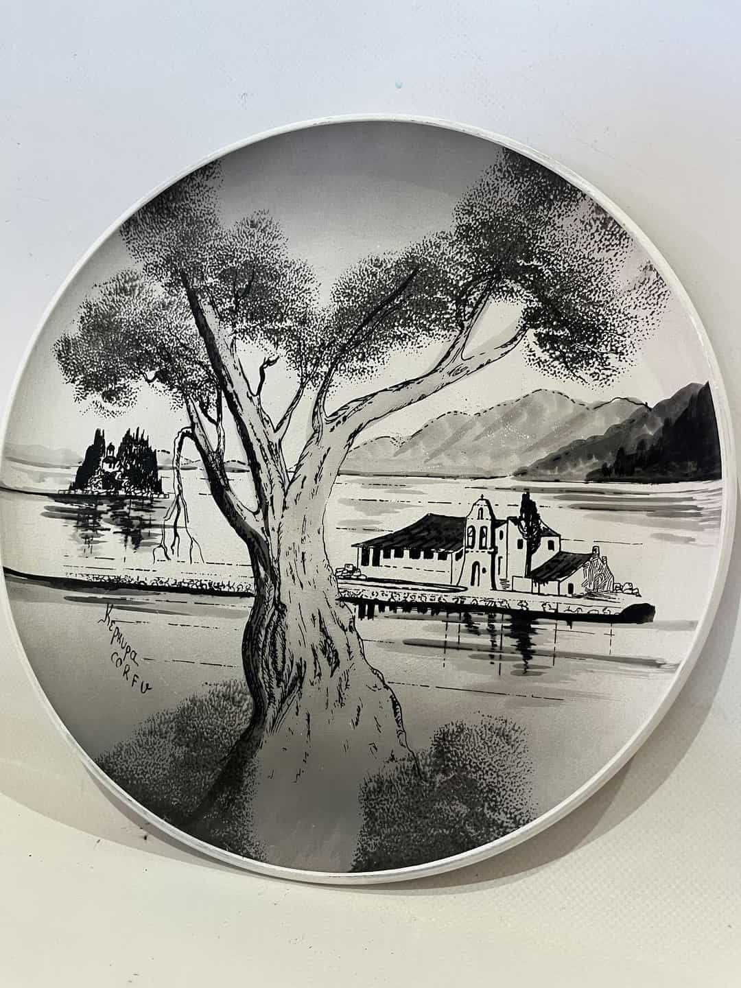 Vintage πήλινο χειροποίητο πιάτο τοίχου Κέρκυρα 29cm  Κωδικός προϊόντος: #s12199