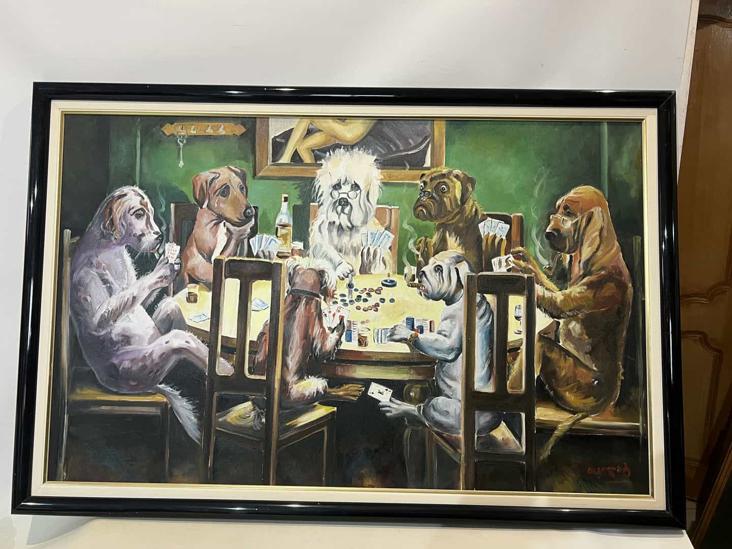 Vintage πίνακας ελαιογραφία “Dogs Playing Poker” με υπογραφή 69×104