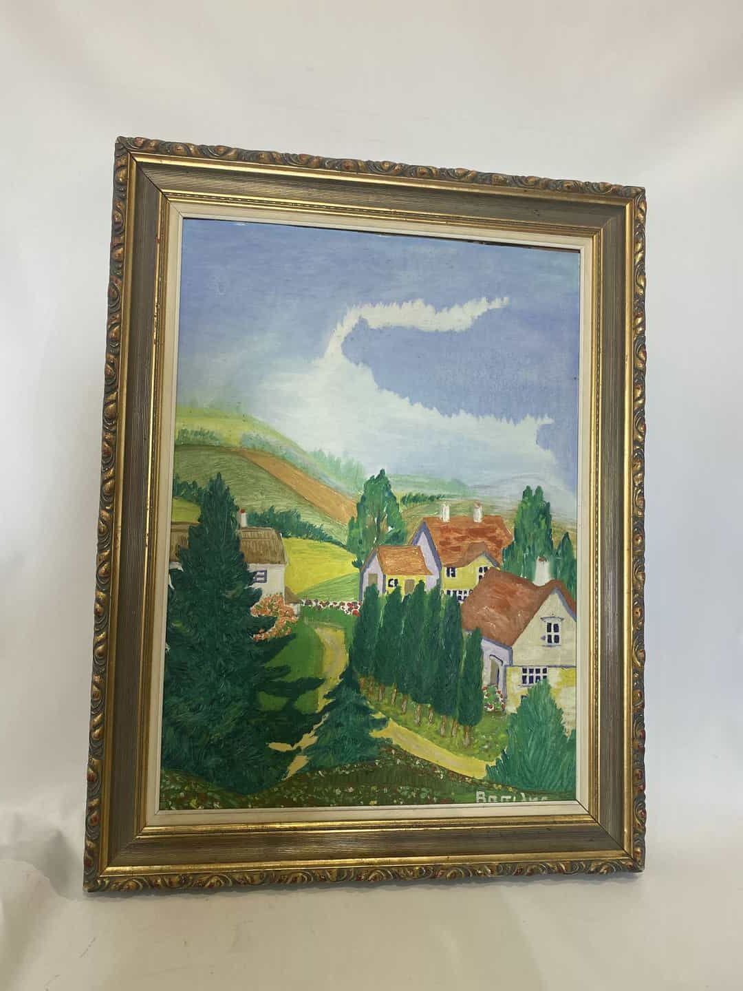 Vintage πίνακας ζωγραφικής που απεικονίζει τοπίο 84×64 με φθορές