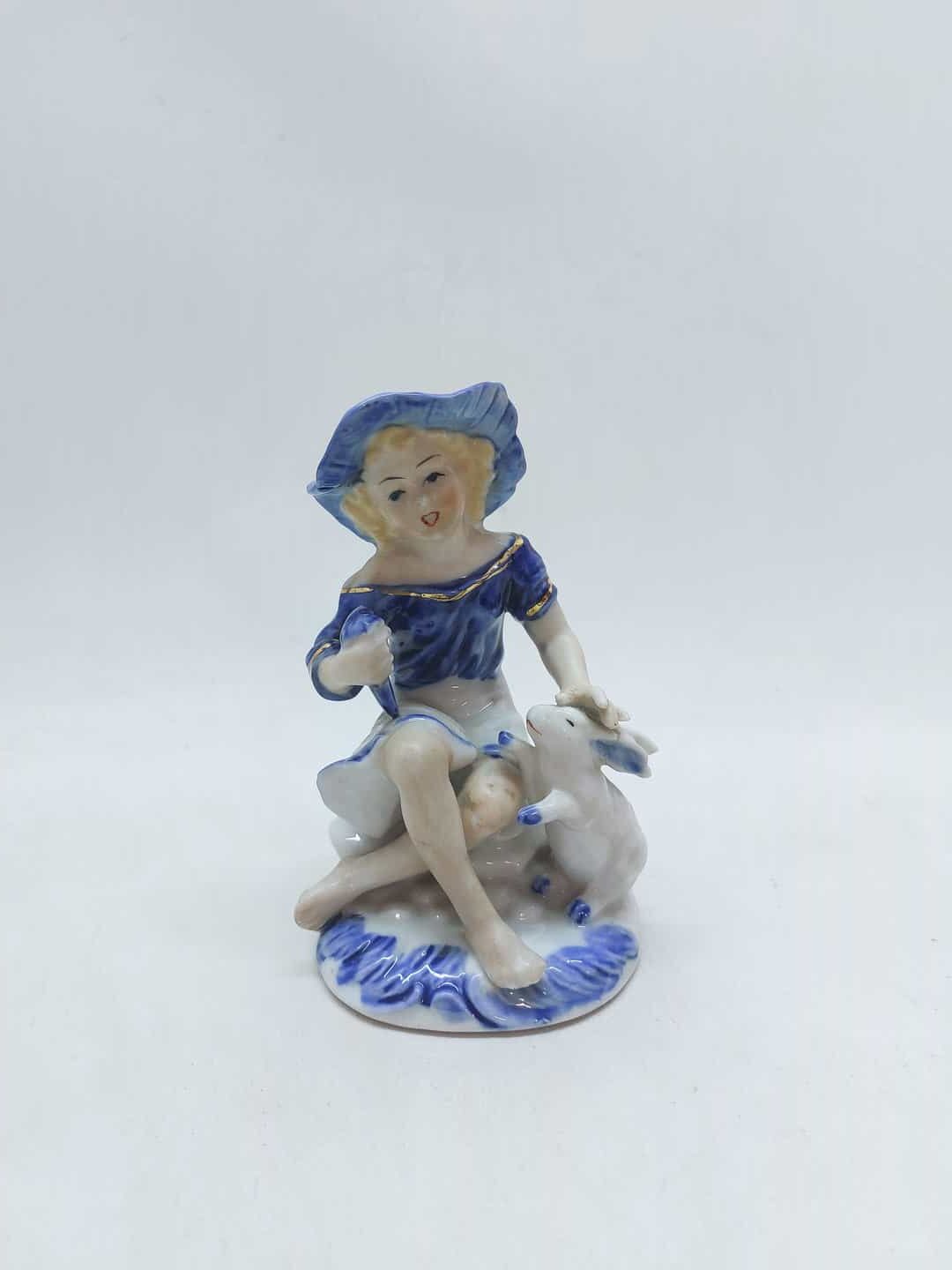Vintage πορσελάνινη επιτραπέζια διακοσμητική φιγούρα μιας γυναίκας με το ζωάκι της 16x9x8,5cm Κωδικός προϊόντος:#s5086