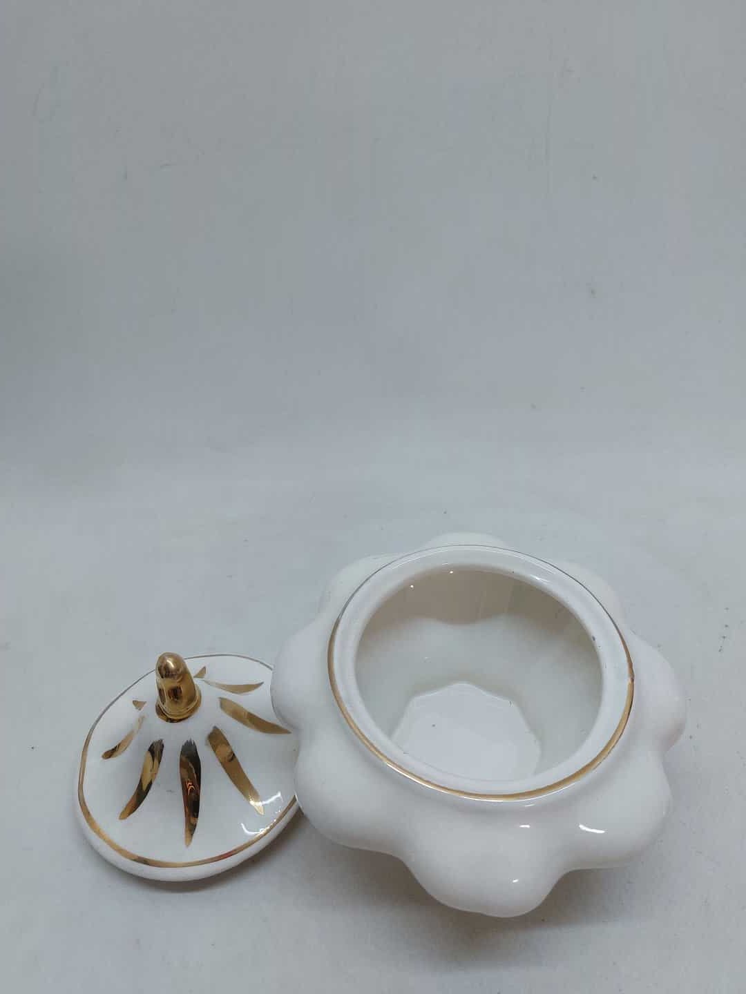 Vintage πορσελάνινη φοντανιέρα με καπάκι σε λευκό χρώμα με χρυσές λεπτομέρειες 16,5×16,5cm Κωδικός προϊόντος: #s5581