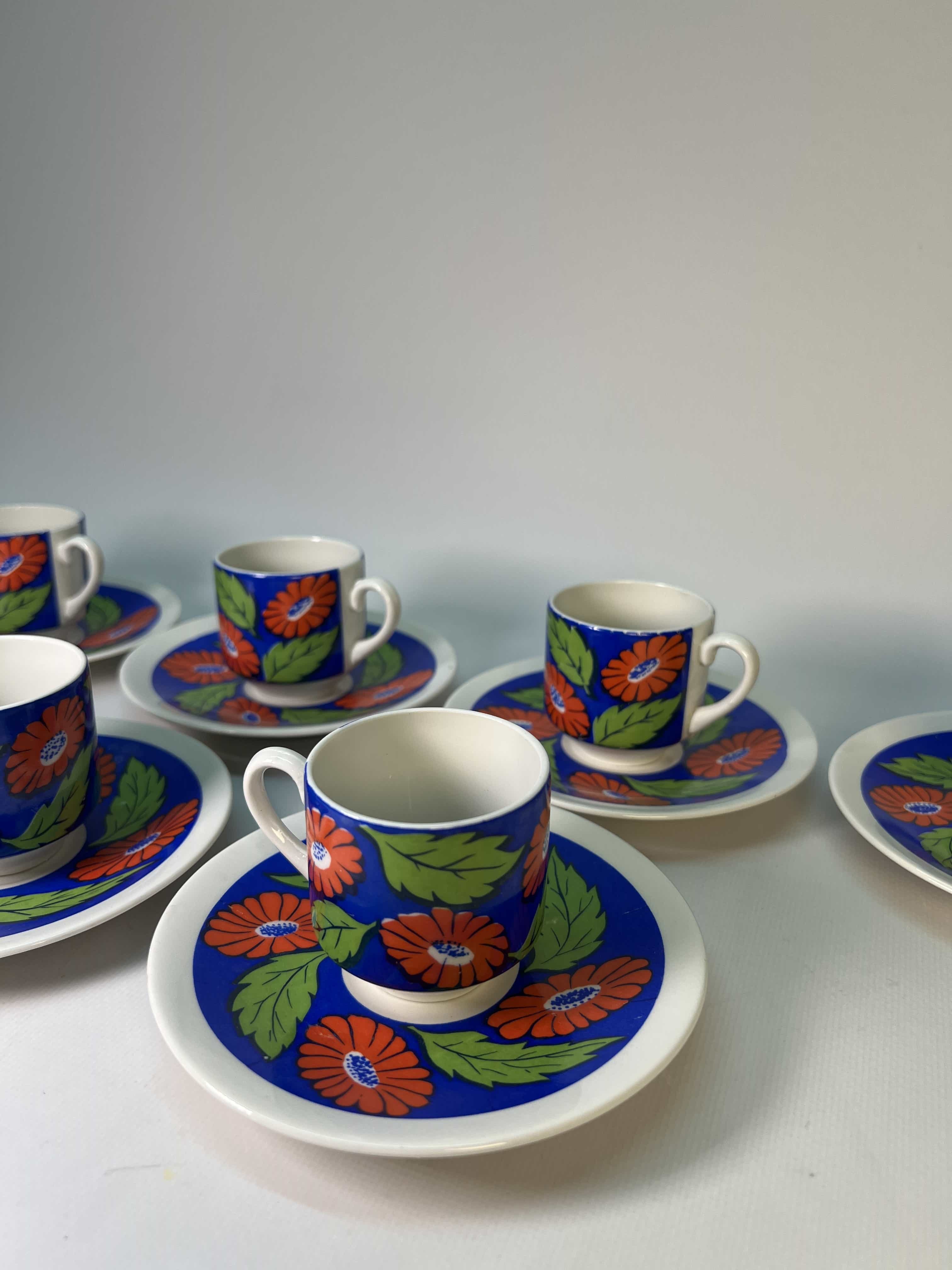 Vintage πορσελάνινο σετ 6 φλιτζανάκια-πιατάκια καφέ Candia