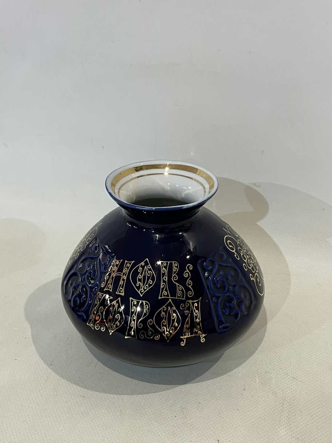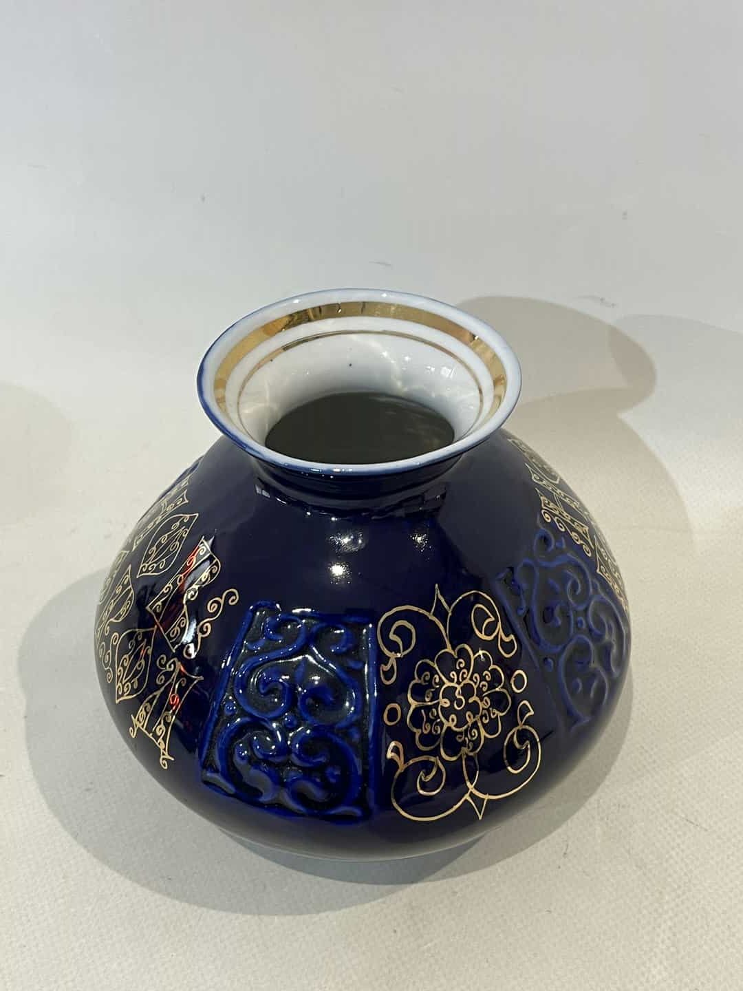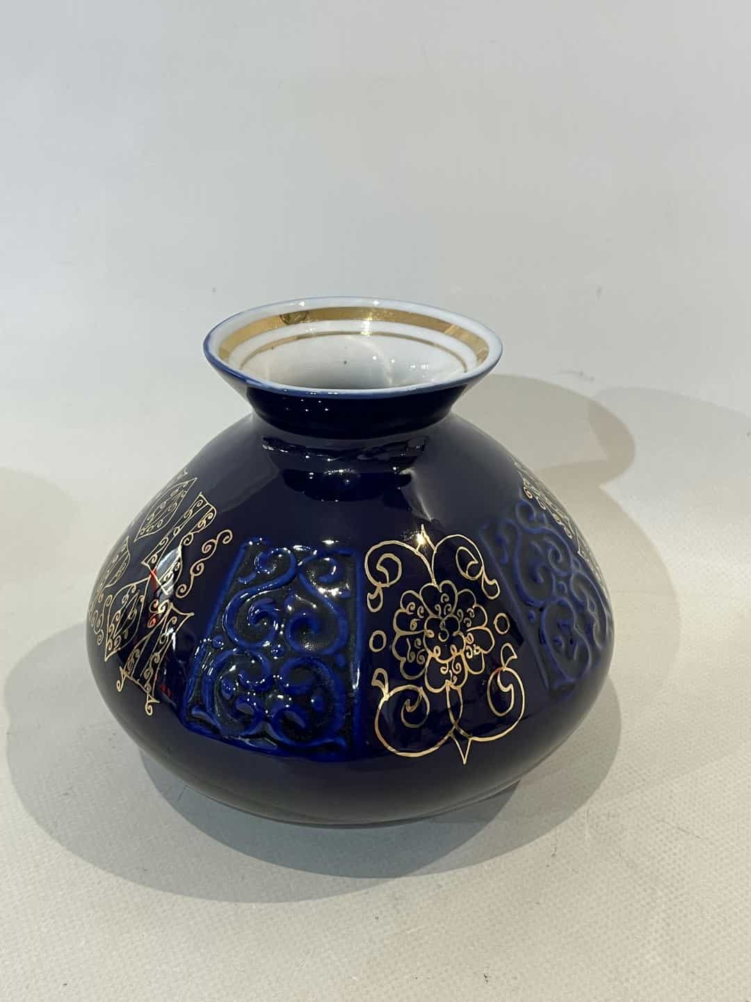 Vintage Ρώσικο βάζο του 1970 με επίχρυσα σχέδια φυτού Vozrozdenie 14×15 , USSR  Κωδικός προϊόντος: #s9534