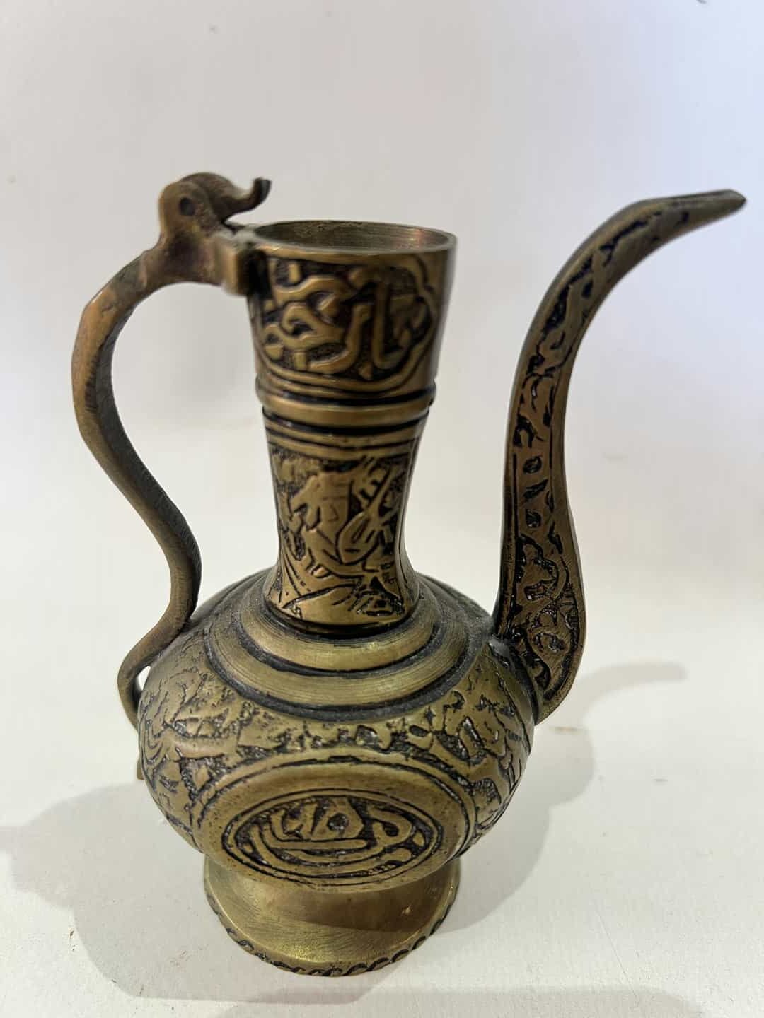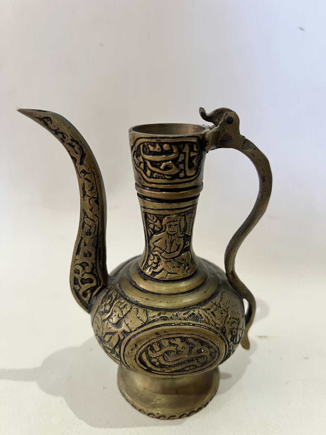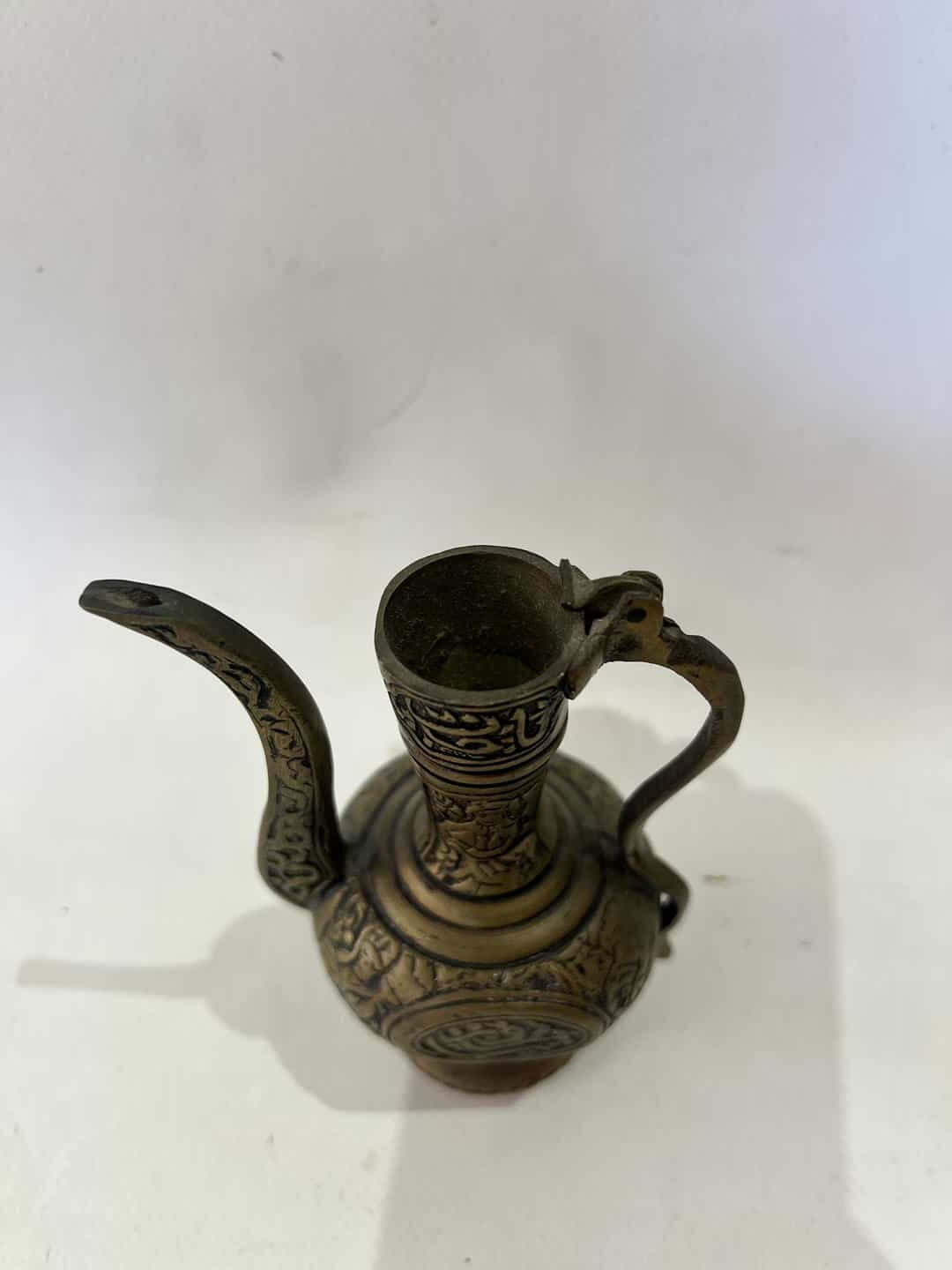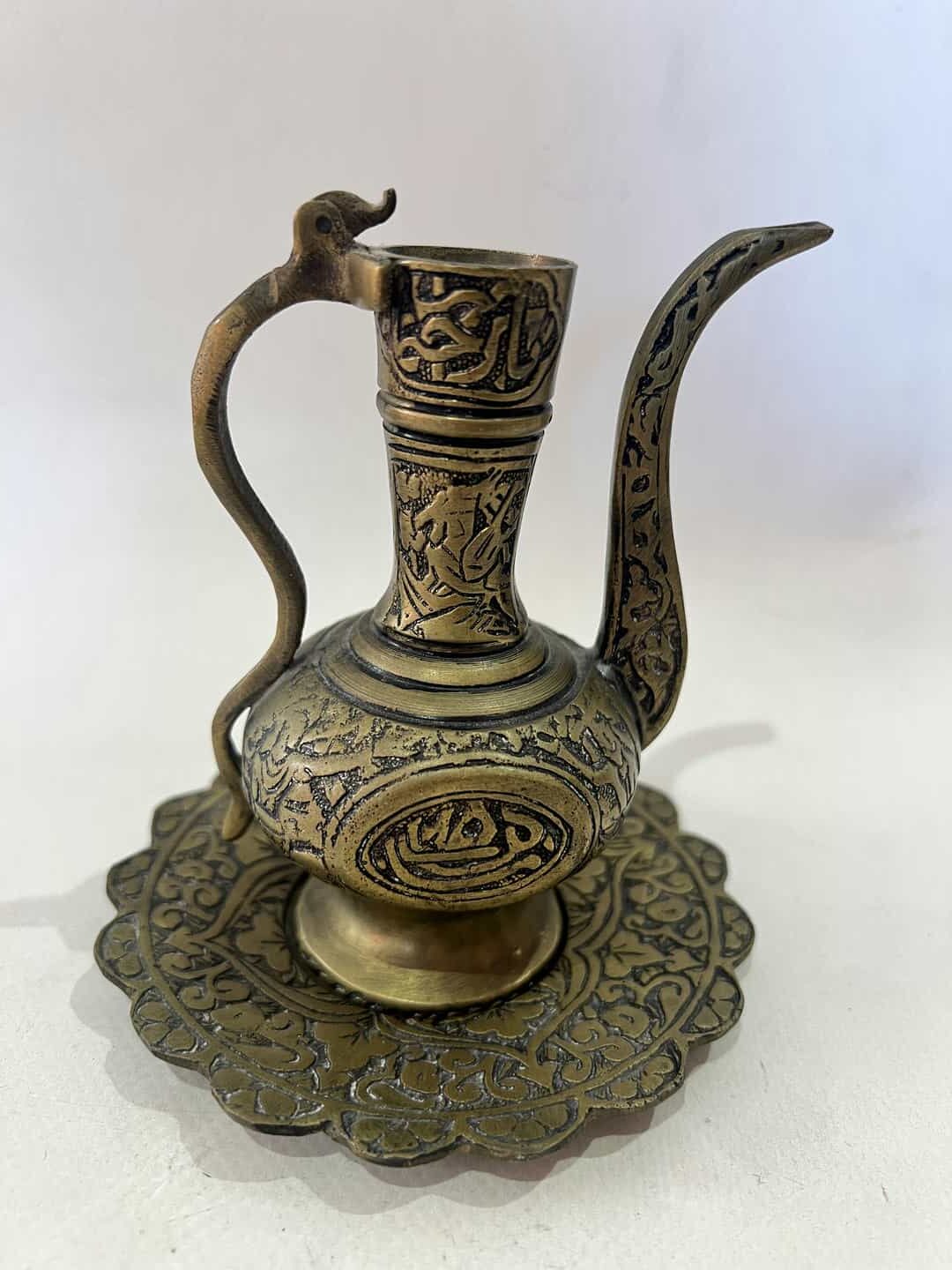 Vintage σετ Ισλαμικό μπρούτζινο τσαγερό με πιατάκι εποχής 11×8/10,5εκ.