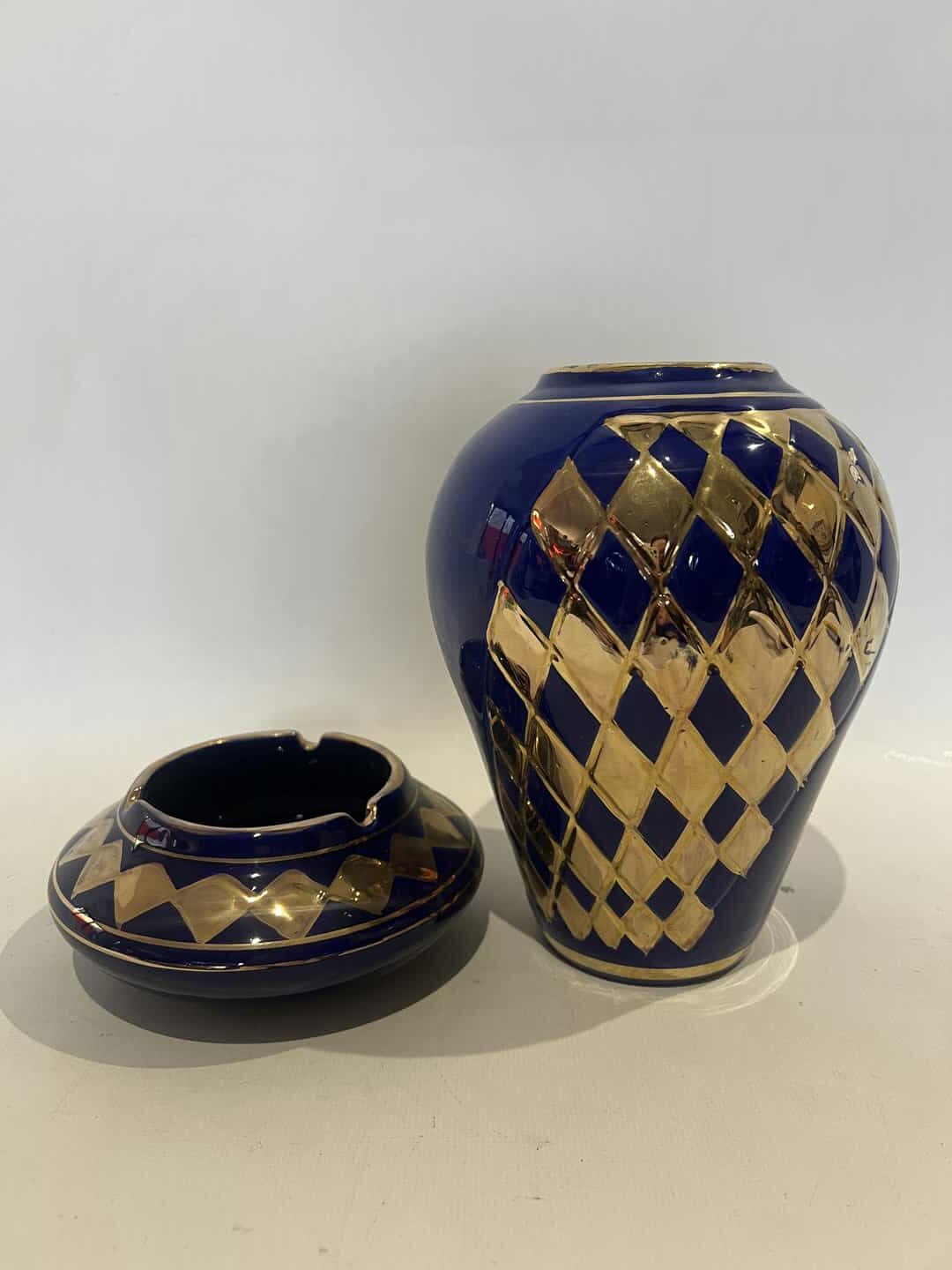 Vintage σετ πορσελάνινο τασάκι με βάζο χειροποίητα 24ΚR