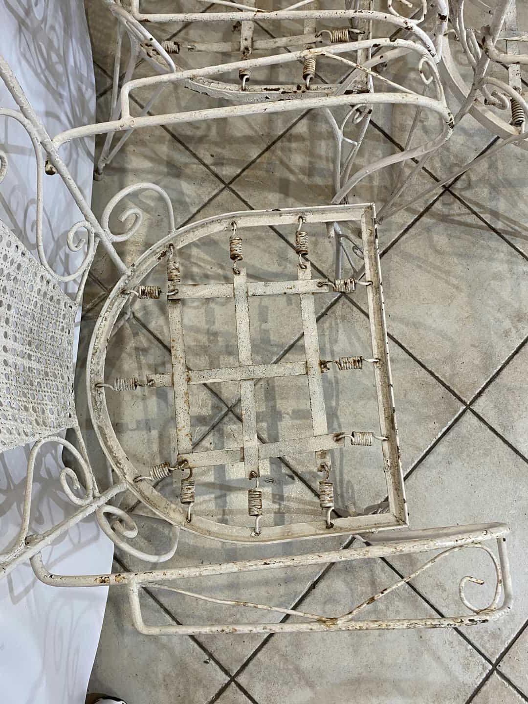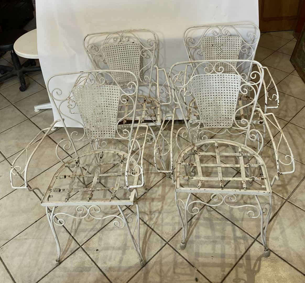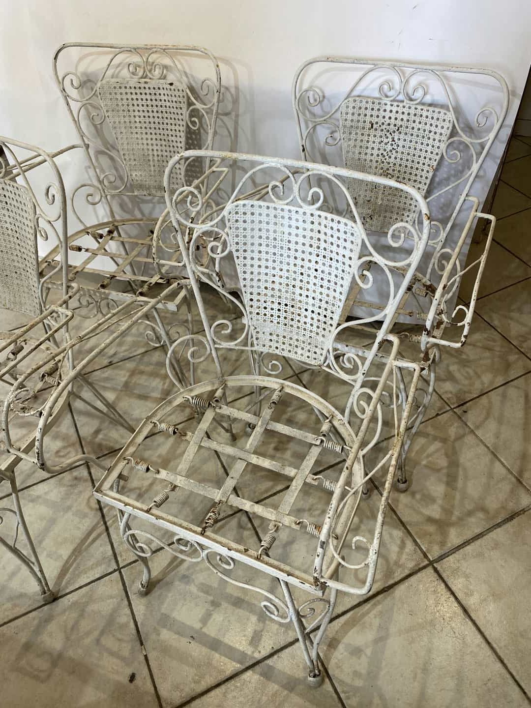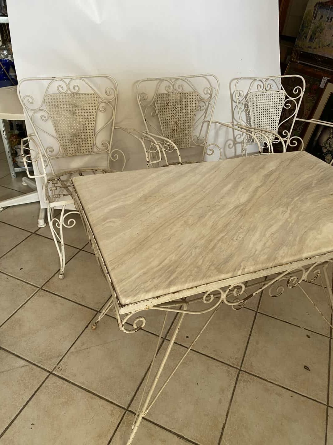 Vintage σετ τραπέζι φερ φορζέ με 4 καρέκλες και μαρμάρινη επιφάνεια