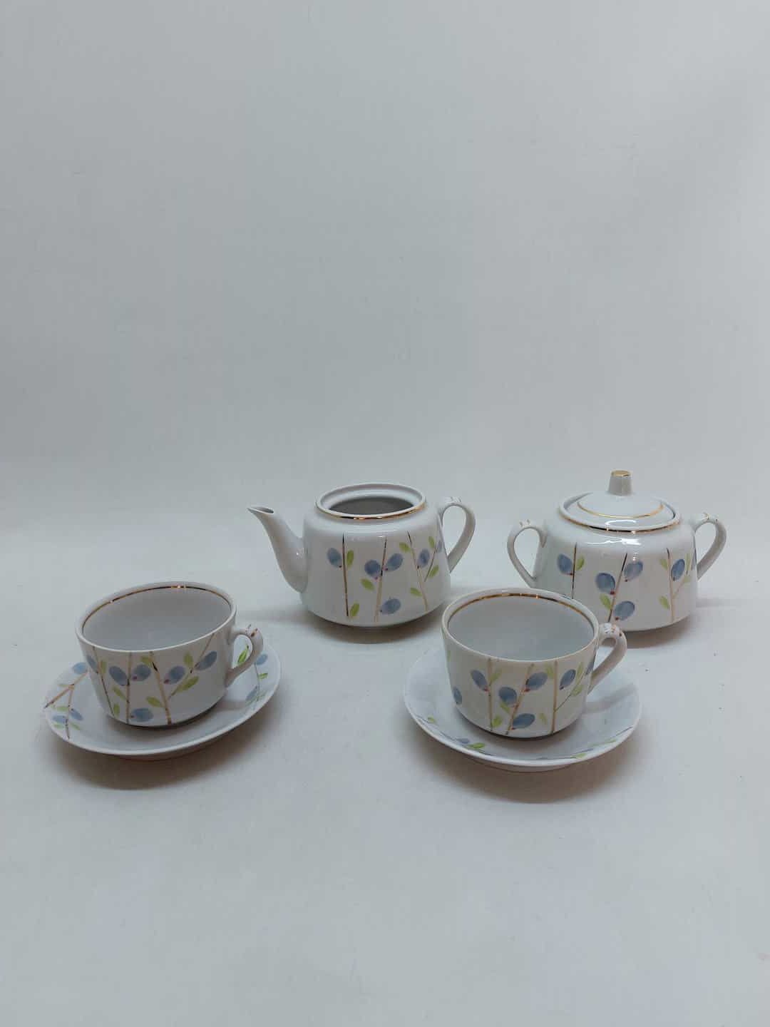 Vintage σετ τσαγιού/καφέ Σοβιετικής Ένωσης 4 τεμαχίων. Αποτελείται από 1 τσαγιέρα/καφετιέρα 9,517x10cm, 1 ζαχαριέρα 12x15x10cm, 2 φλιτζάνια 6x10x8,5cm και τα πιατάκια τους 13cm Κωδικός προϊόντος: #s7420