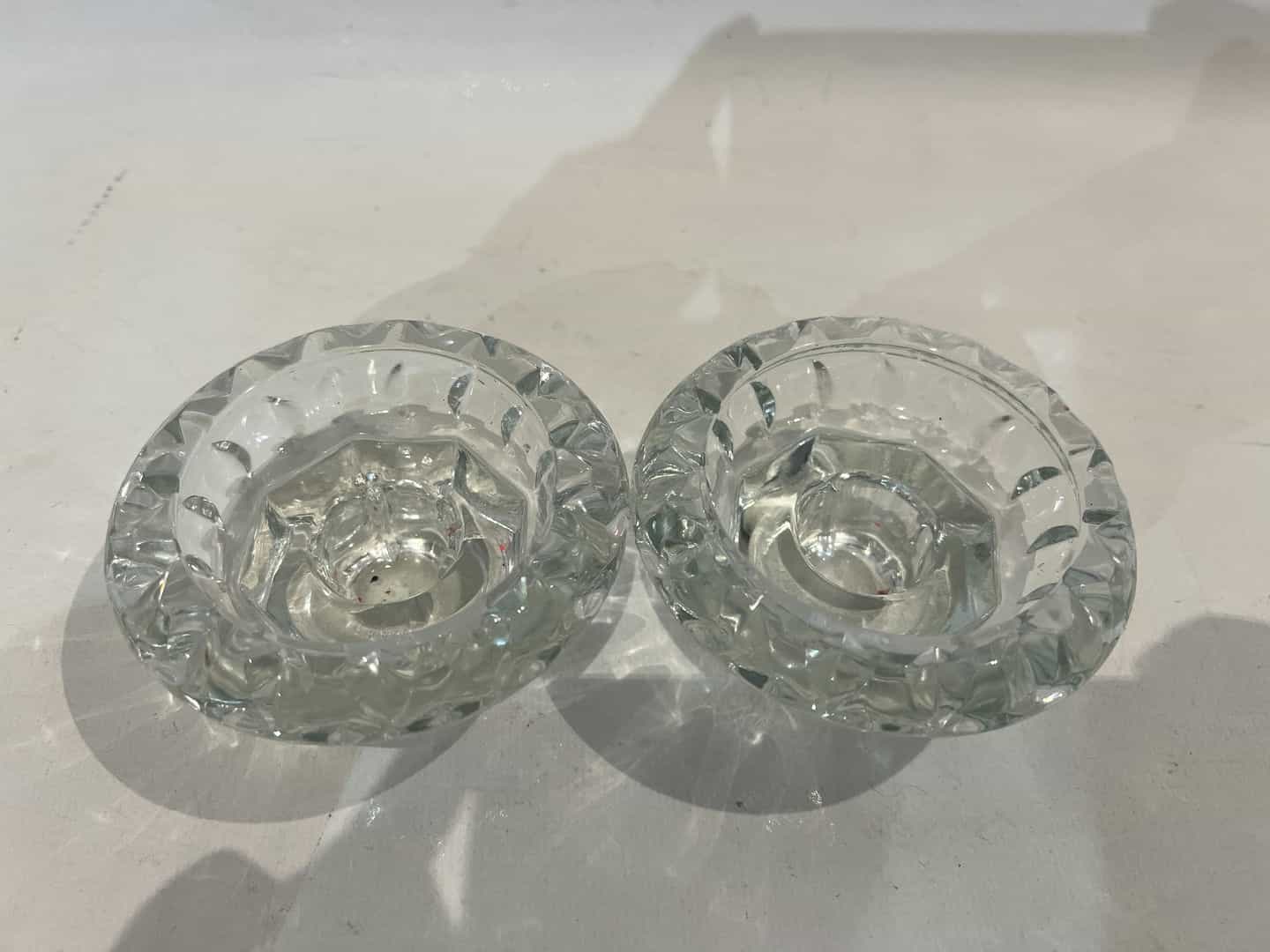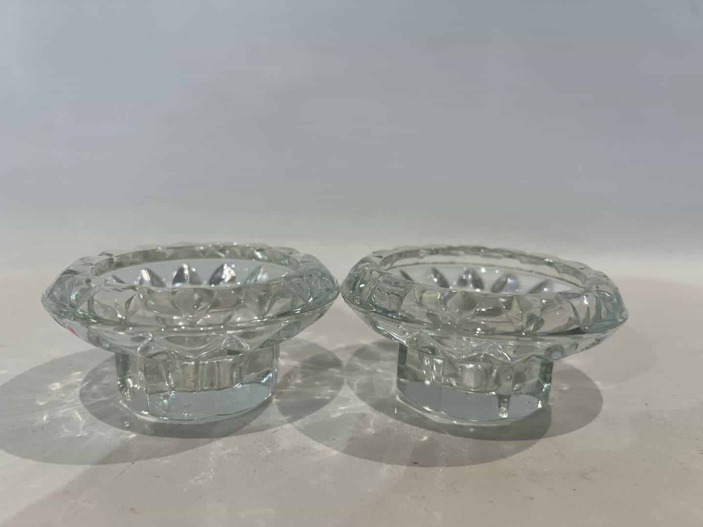 Vintage σετ 2 γυάλινα κηροπήγια made in France 4,5×9 Κωδικός προϊόντος: #s15216