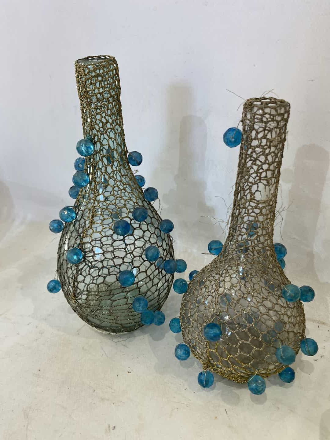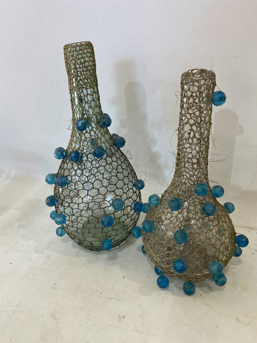Vintage σετ 2 διακοσμητικά χειροποίητα ανθοδοχεία