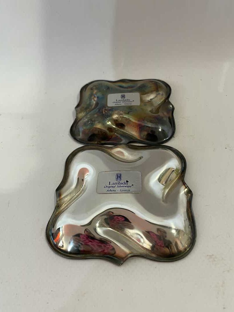 Vintage σετ 2 επάργυρα πιατάκια LAMBIDIS 8εκ με φθορές Κωδικός προϊόντος: #s13341