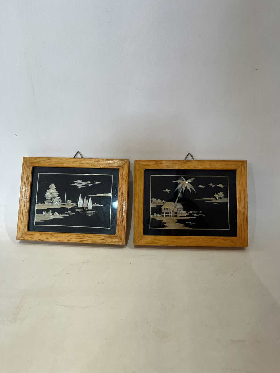 Vintage σετ 2 καδράκια τοίχου από μπαμπού ,δεκαετίας του 1950 9×11 Κωδικός προϊόντος: #s16804