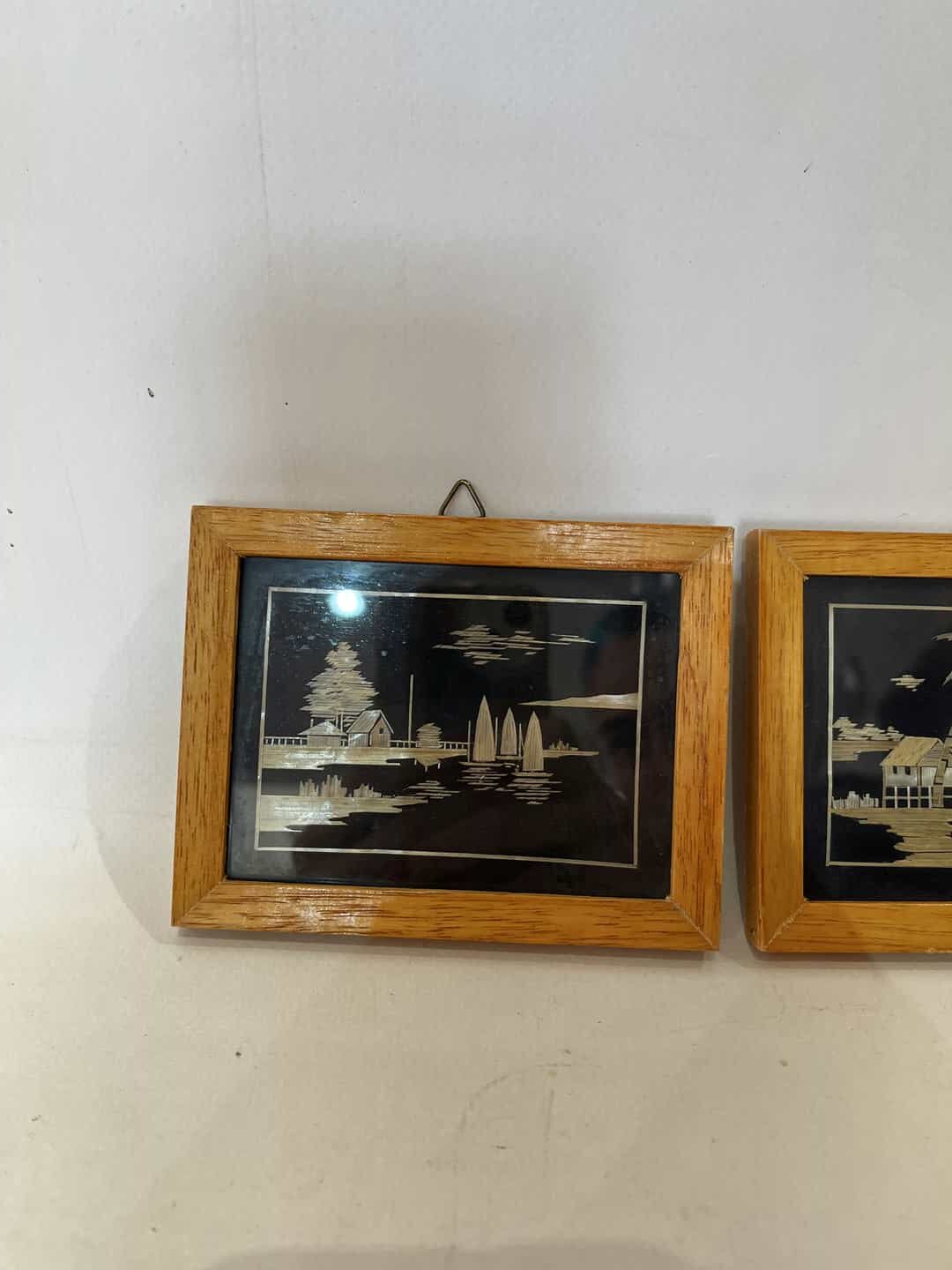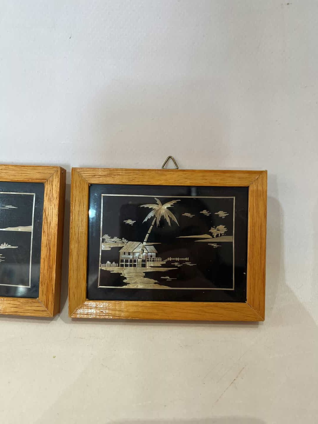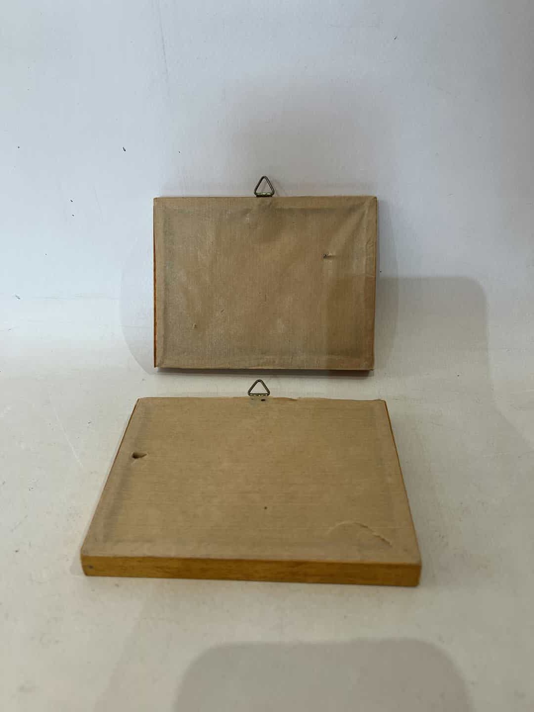 Vintage σετ 2 καδράκια τοίχου από μπαμπού ,δεκαετίας του 1950 9×11