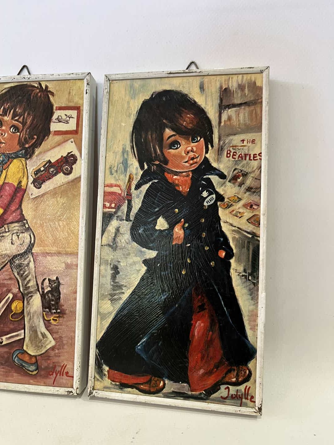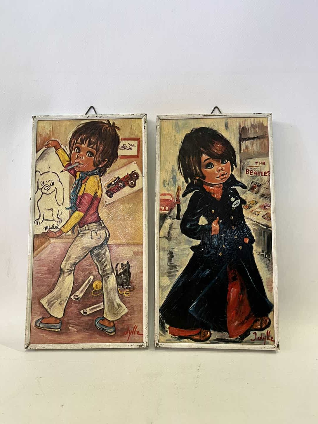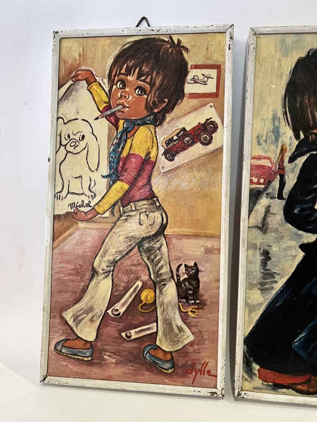 Vintage σετ 2 καδράκια τοίχου ,με απεικόνιση παιδιών Jolylle 24×12 , εκτύπωση