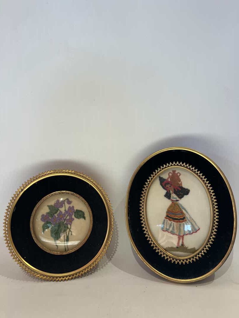 Vintage σετ 2 κεντητά καδράκια 17×14/14εκ.