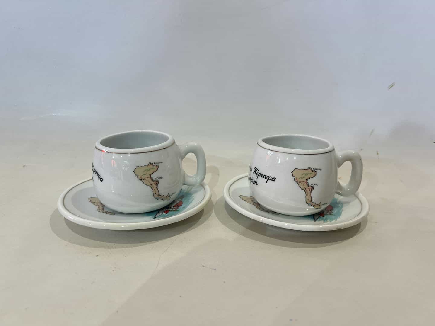 Vintage σετ 2 κεραμικά πιατάκια με φλιτζάνια Κέρκυρα  φλ:5,5×9 / πιατ: 12,5εκ. Κωδικός προϊόντος: #s15491