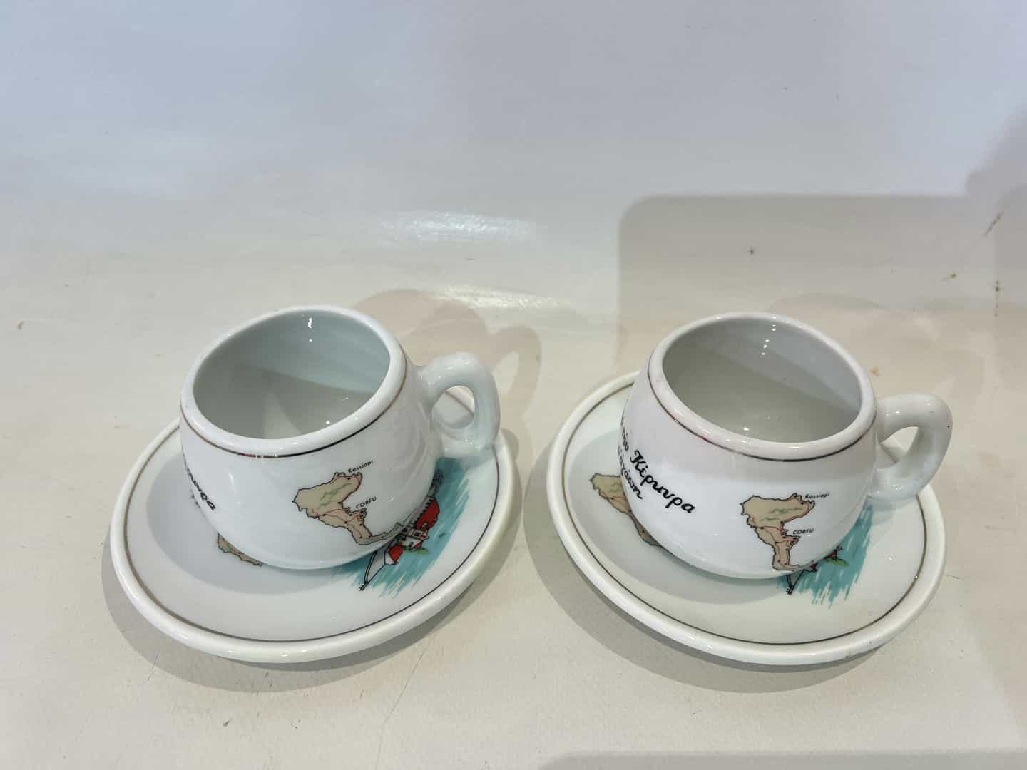 Vintage σετ 2 κεραμικά πιατάκια με φλιτζάνια Κέρκυρα