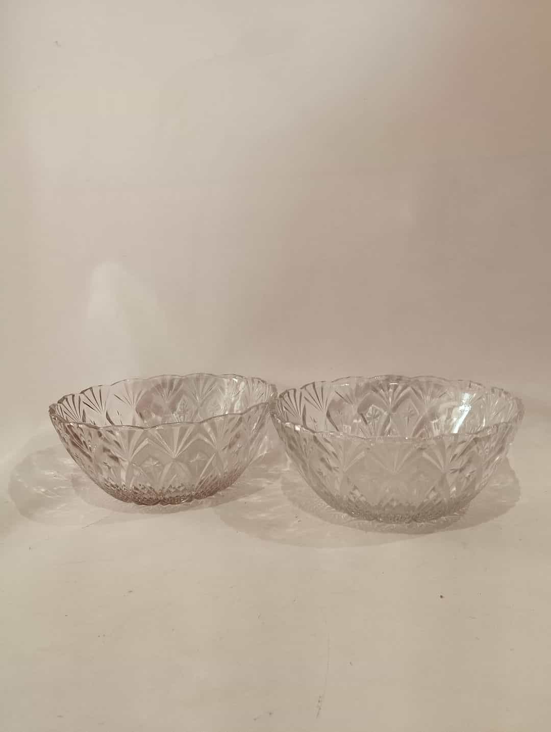 Vintage σετ 2 κρυστάλλινα μπολ με σκαλιστά σχέδια 8×20
