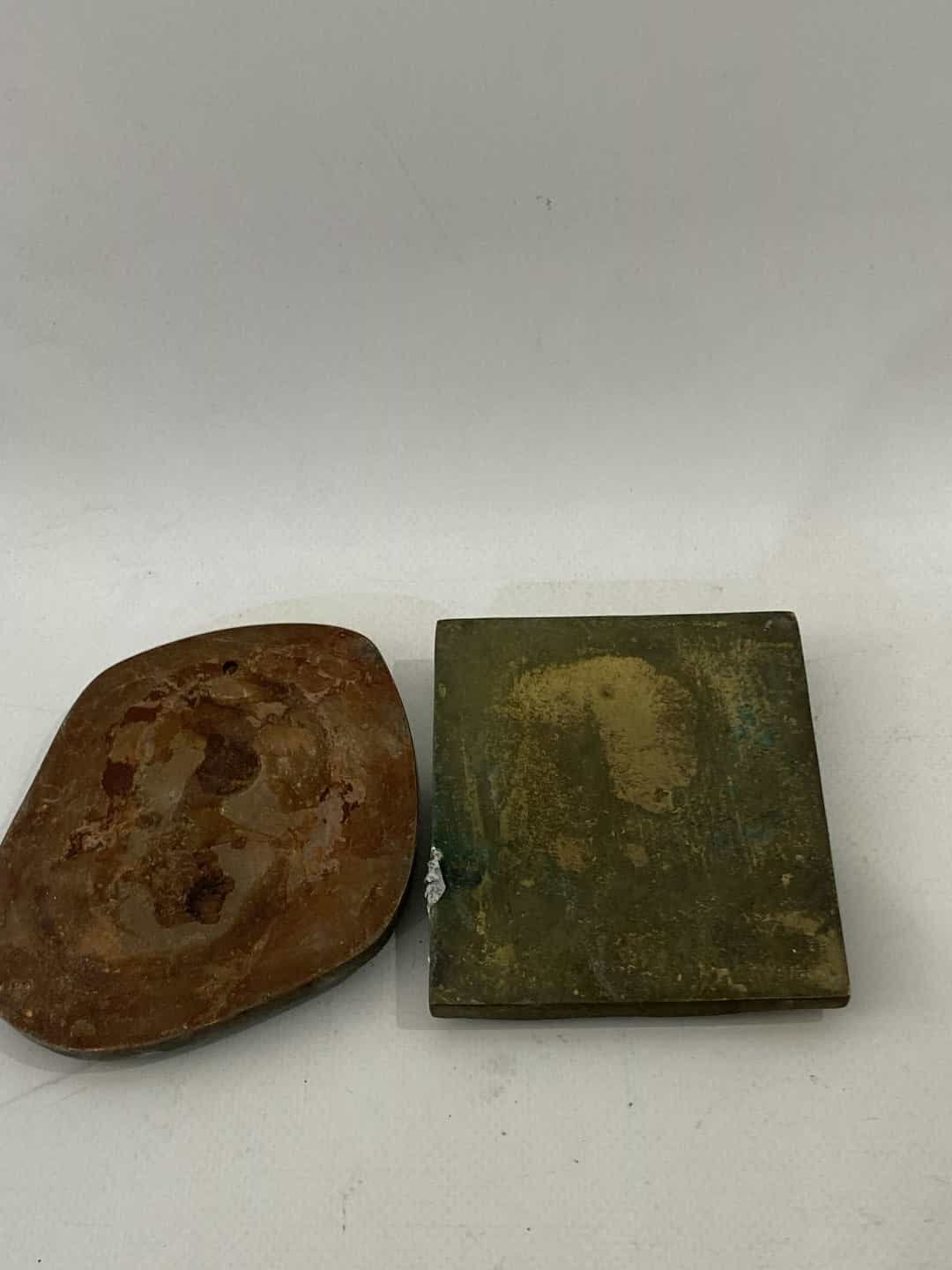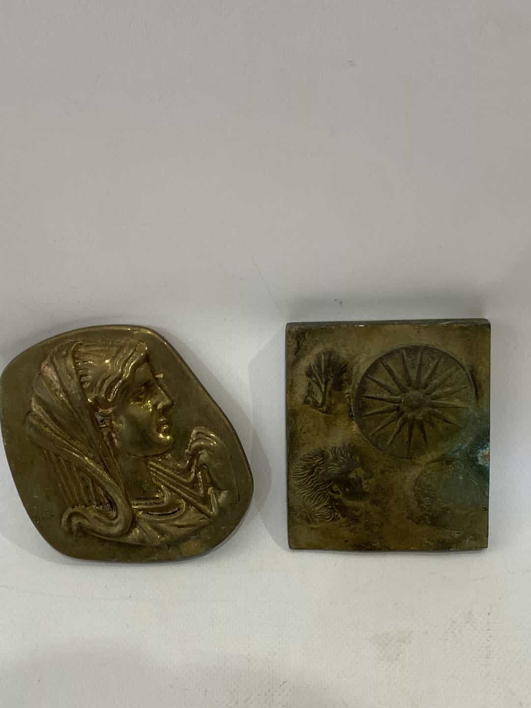 Vintage σετ 2 μπρούντζινα αναμνηστικά με αρχαιοελληνικές αναπαραστάσεις 11×10,10×9 με φθορές  Κωδικός προϊόντος: #s13633