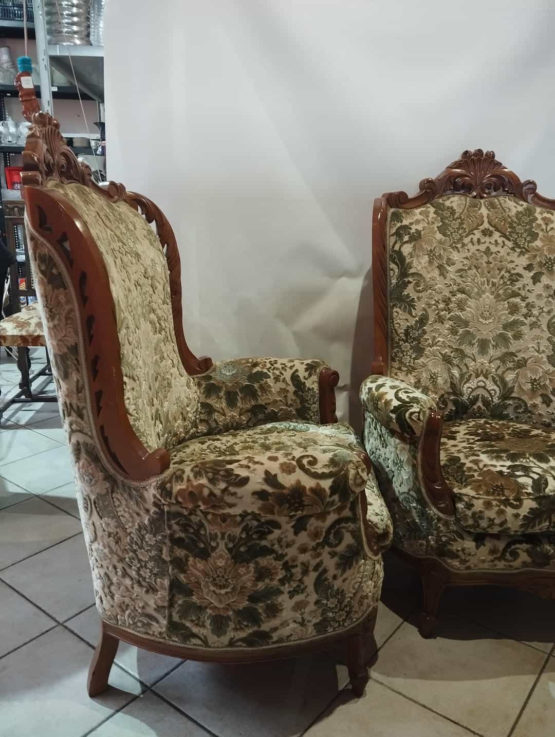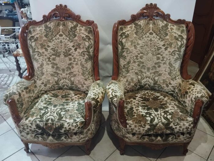 Vintage σετ 2 πολυθρόνες με μπράτσα σε στυλ Louis XV 123x86x66