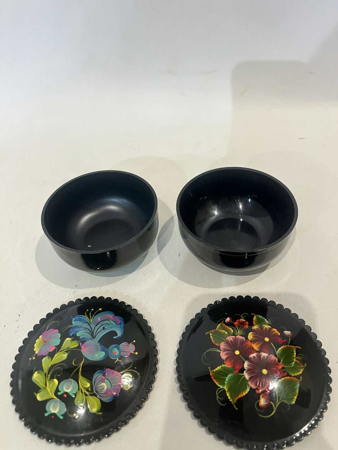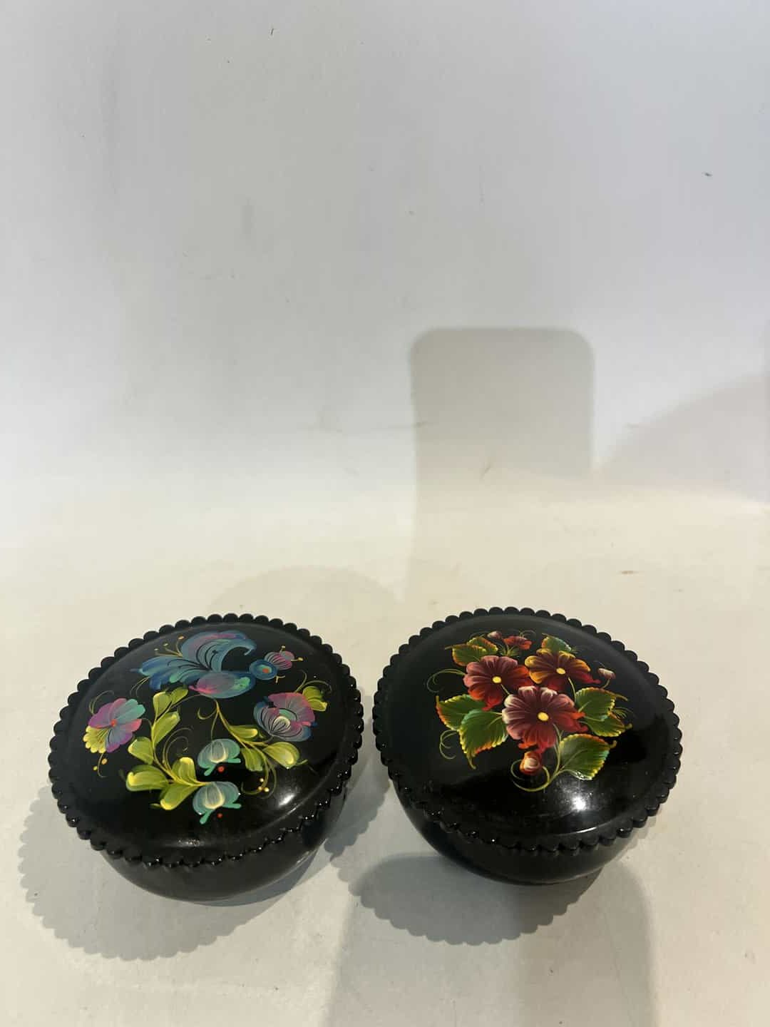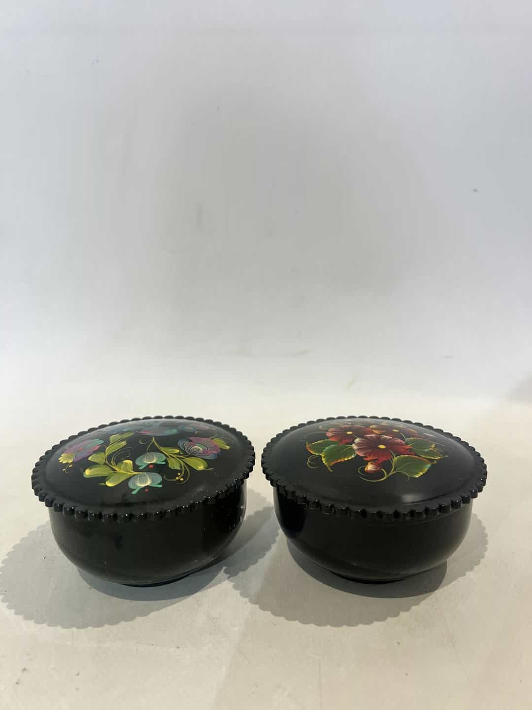 Vintage σετ 2 Ρώσικα λακαρισμένα κουτιά αποθήκευσης με ζωγραφιά λουλουδιών 4×9