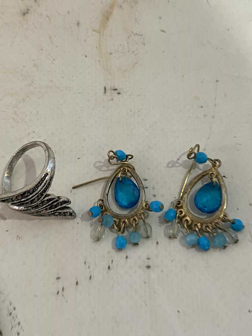 Vintage σετ 2 σκουλαρίκια,κολιέ και δαχτυλίδι Κωδικός προϊόντος: #s12466