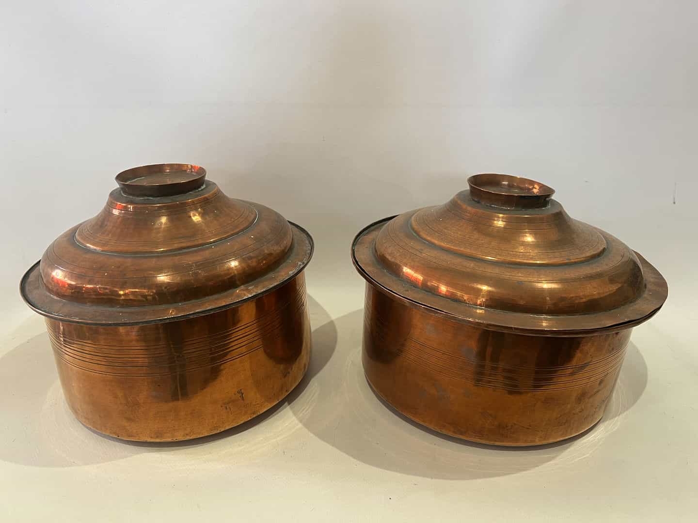 Vintage σετ 2 τεντζερέδες χάλκινες με καπάκια 23×26