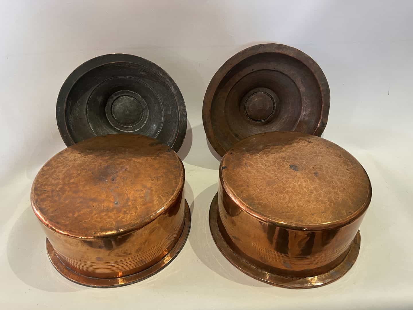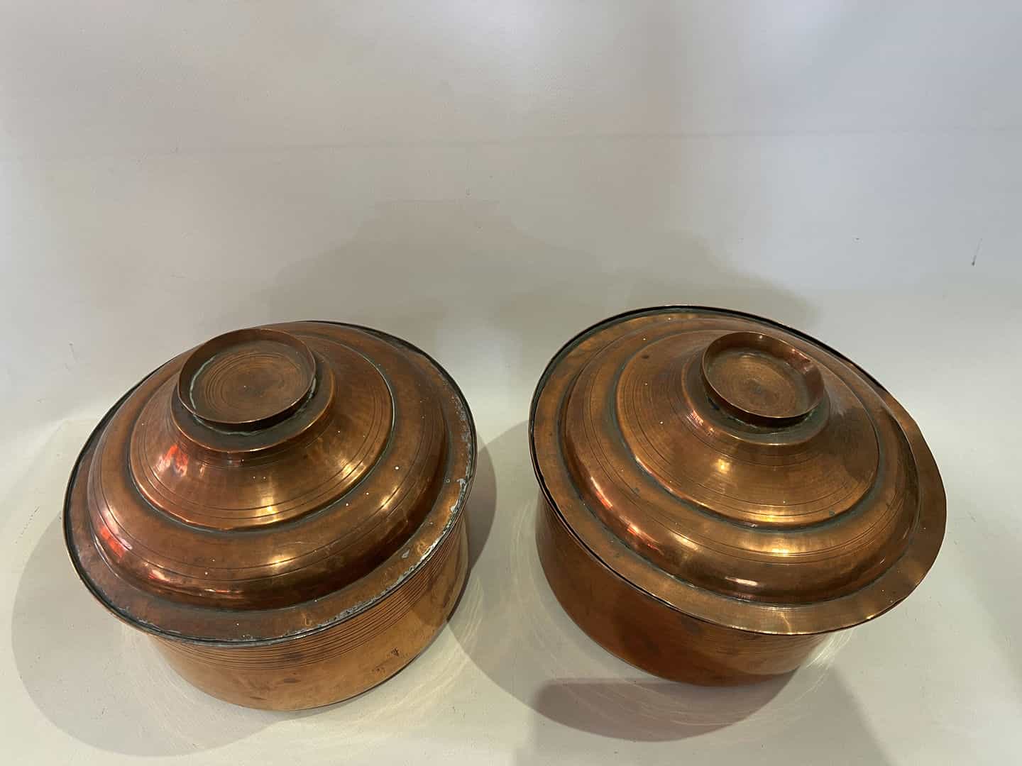 Vintage σετ 2 τεντζερέδες χάλκινες με καπάκια 23×26  Κωδικός προϊόντος: #s15829