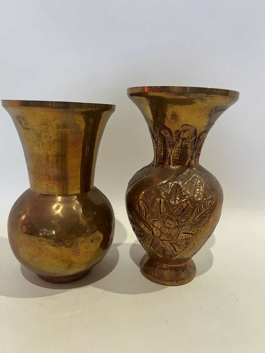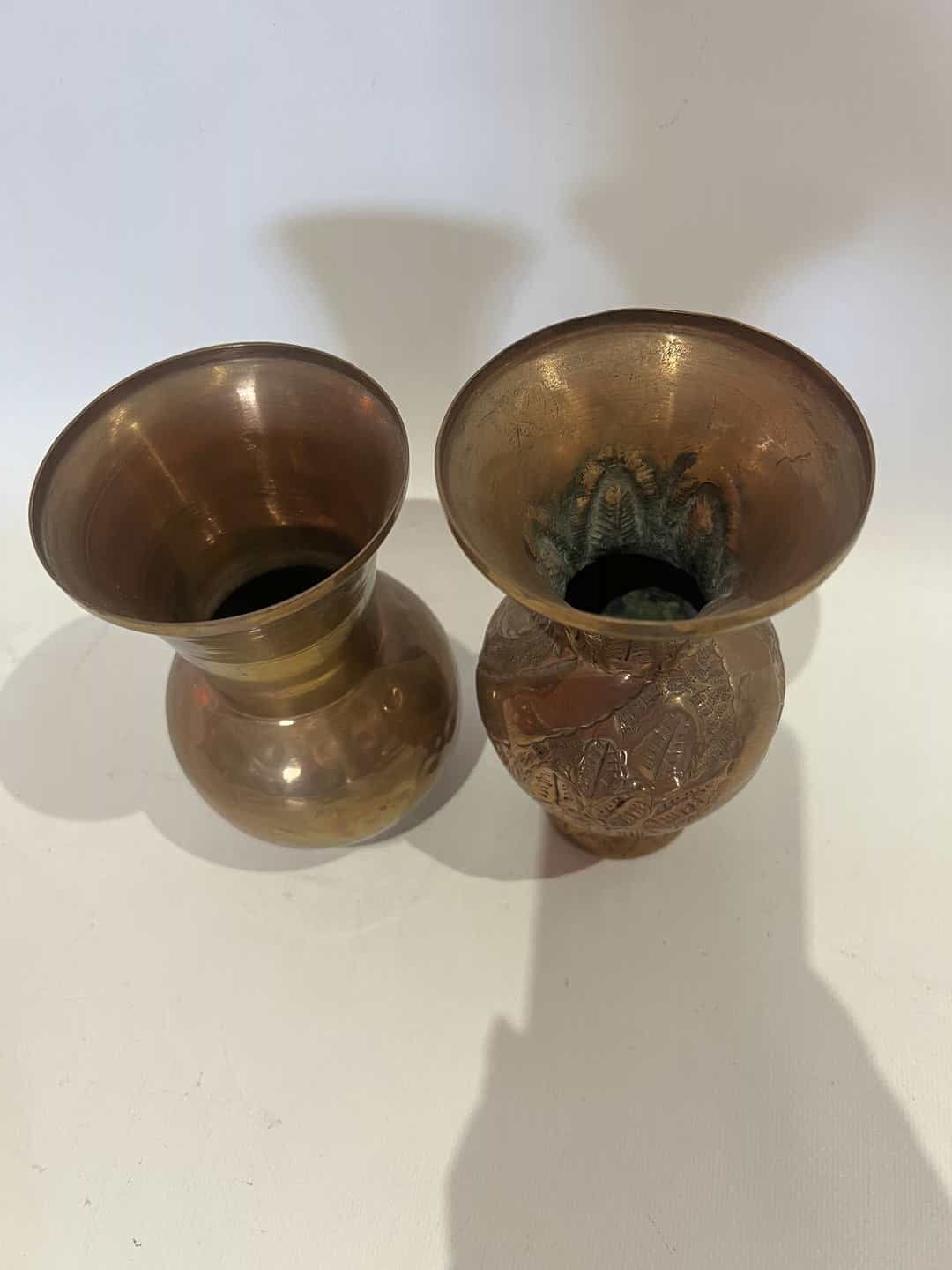 Vintage σετ 2 χάλκινα ανθοδοχεία 16,5×9 / 15×9 Κωδικός προϊόντος: #s14746