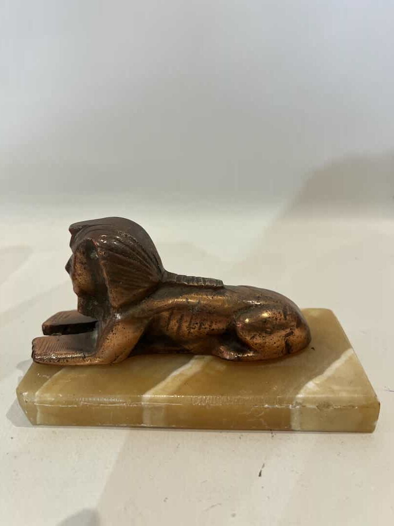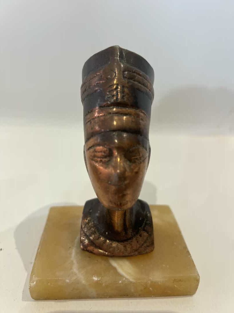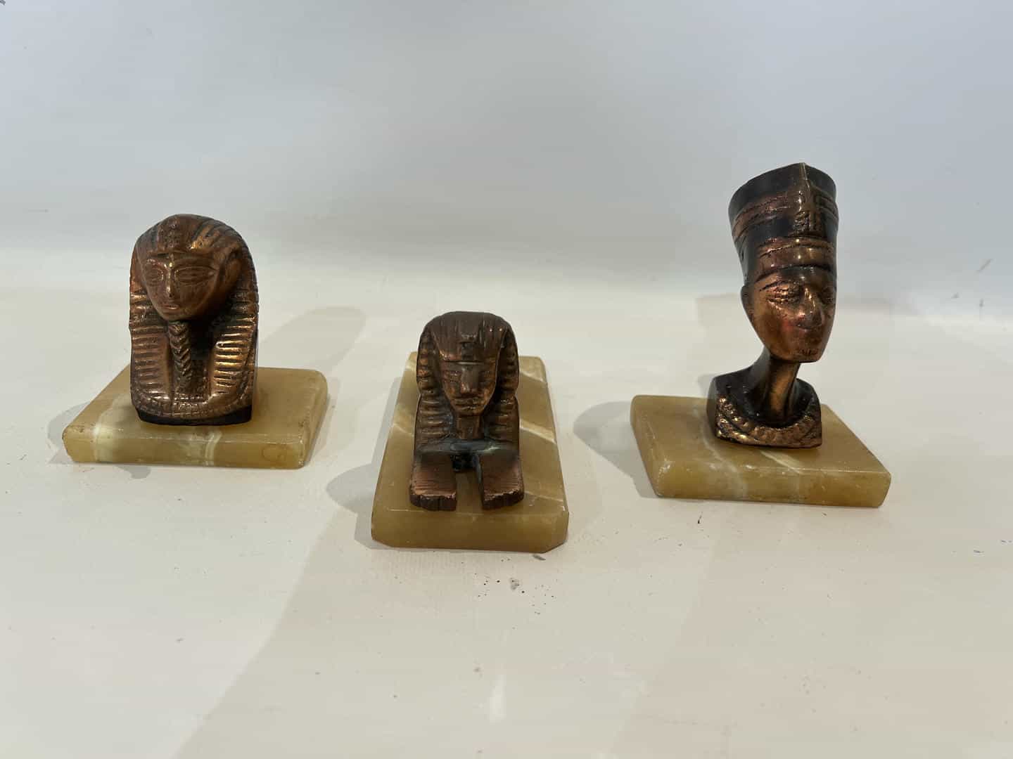 Vintage σετ 3 ορειχάλκινες Αιγυπτιακές φιγούρες σε μαρμάρινη βάση 12×8/9×7/7×13