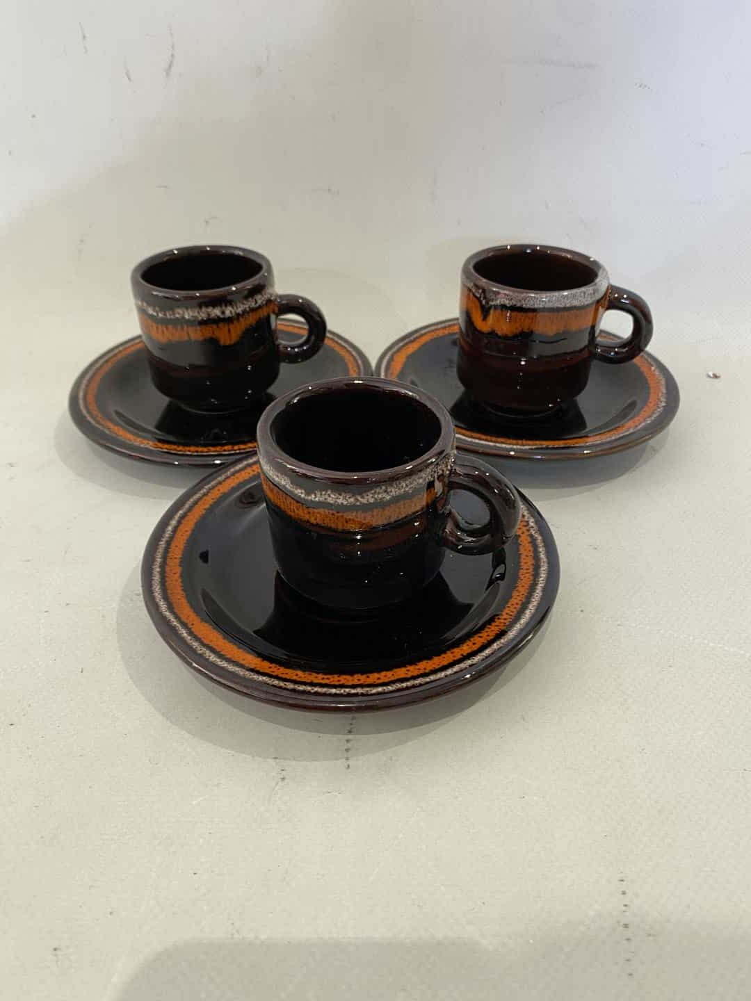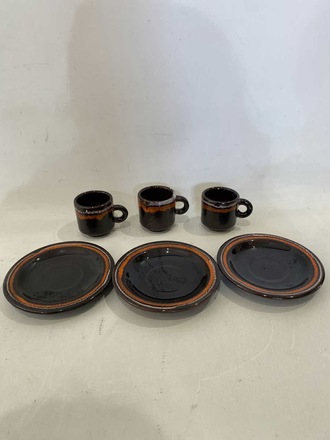 Vintage σετ 3 πήλινα φλυτζάνια του καφέ με πιατάκι φλυτζάνι:6×9 πιάτο:13×13