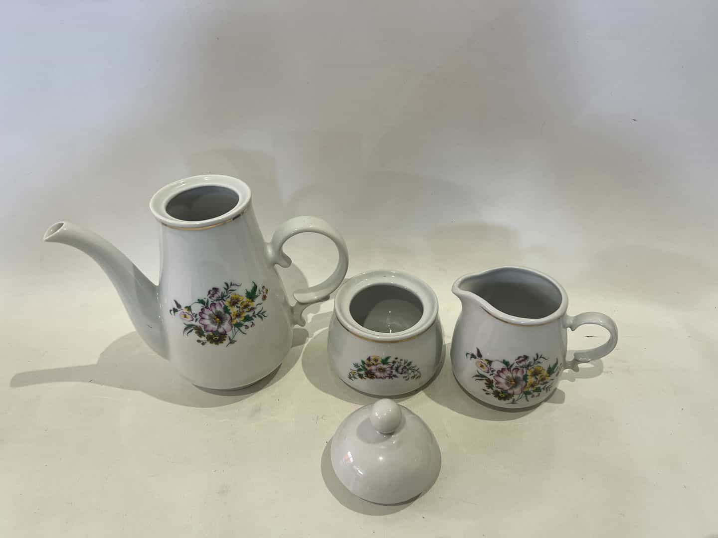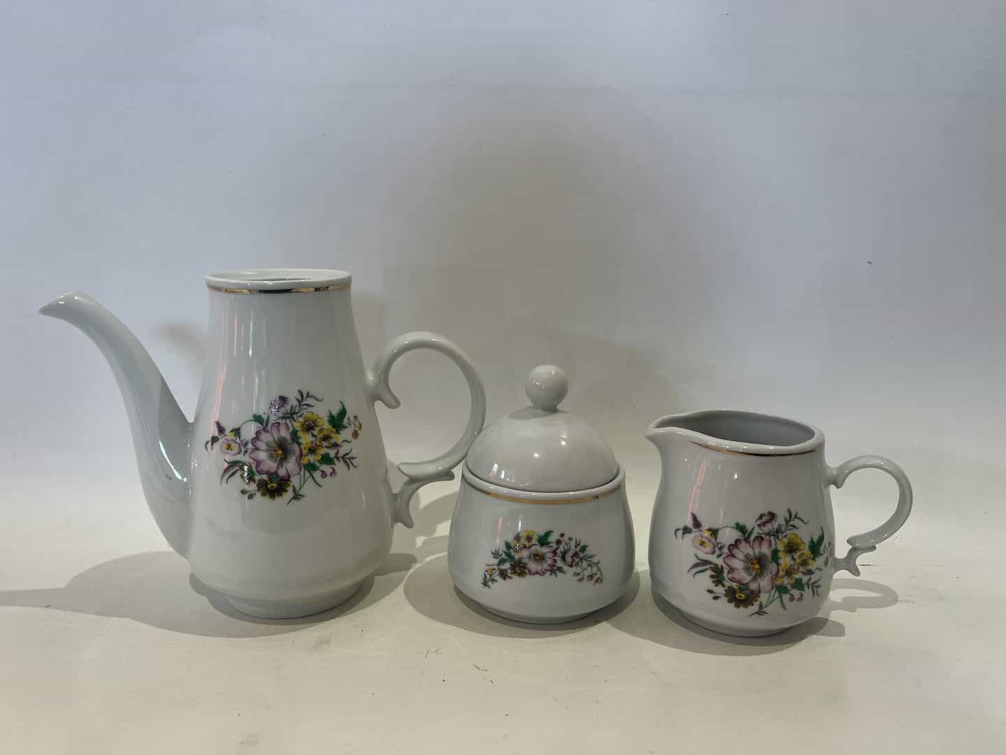 Vintage σετ 3 τσαγιού πορσελάνης RAZGRAD made in Bulgaria. Λείπει το καπάκι από την τσαγιέρα ζαχ:11×8/ γαλα:9×11/ τσαγ:15×20 Κωδικός προϊόντος: #s15962