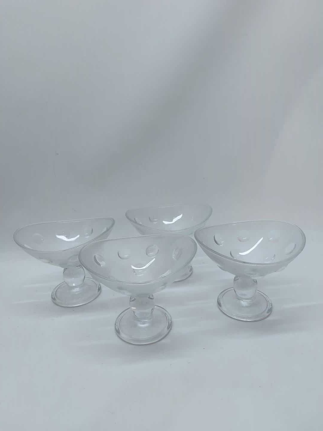 Vintage σετ 4 γυάλινα μπολ επιδόρπιου Ιταλίας πουά με ποδαράκι του 1980 12x15x13cm