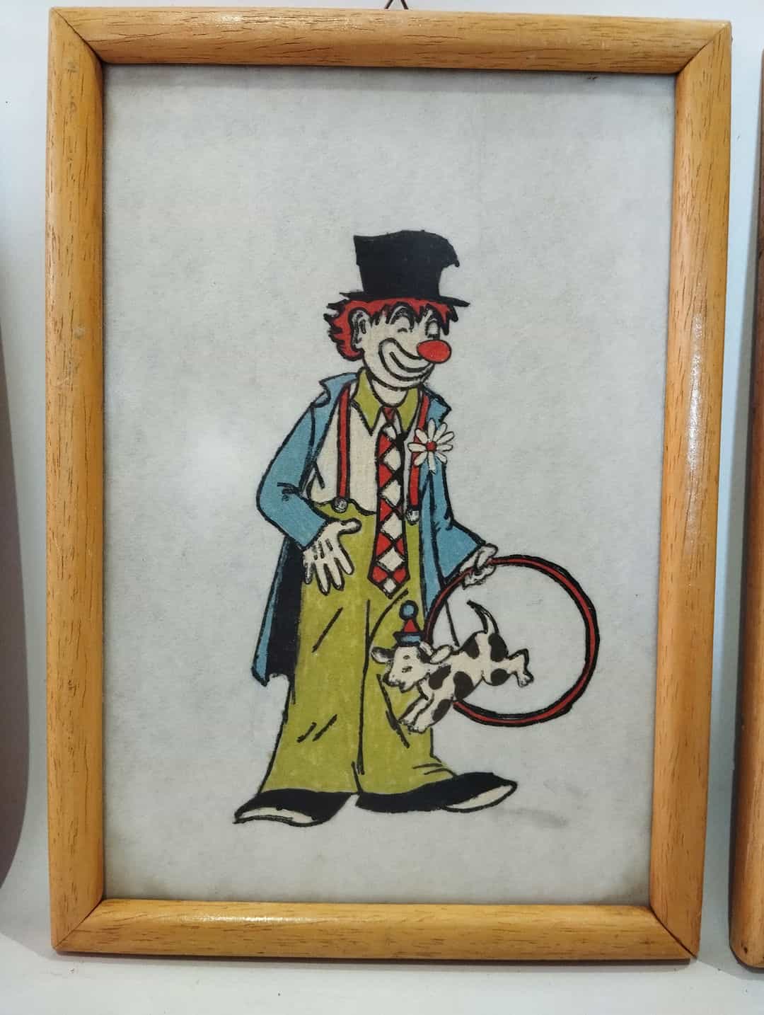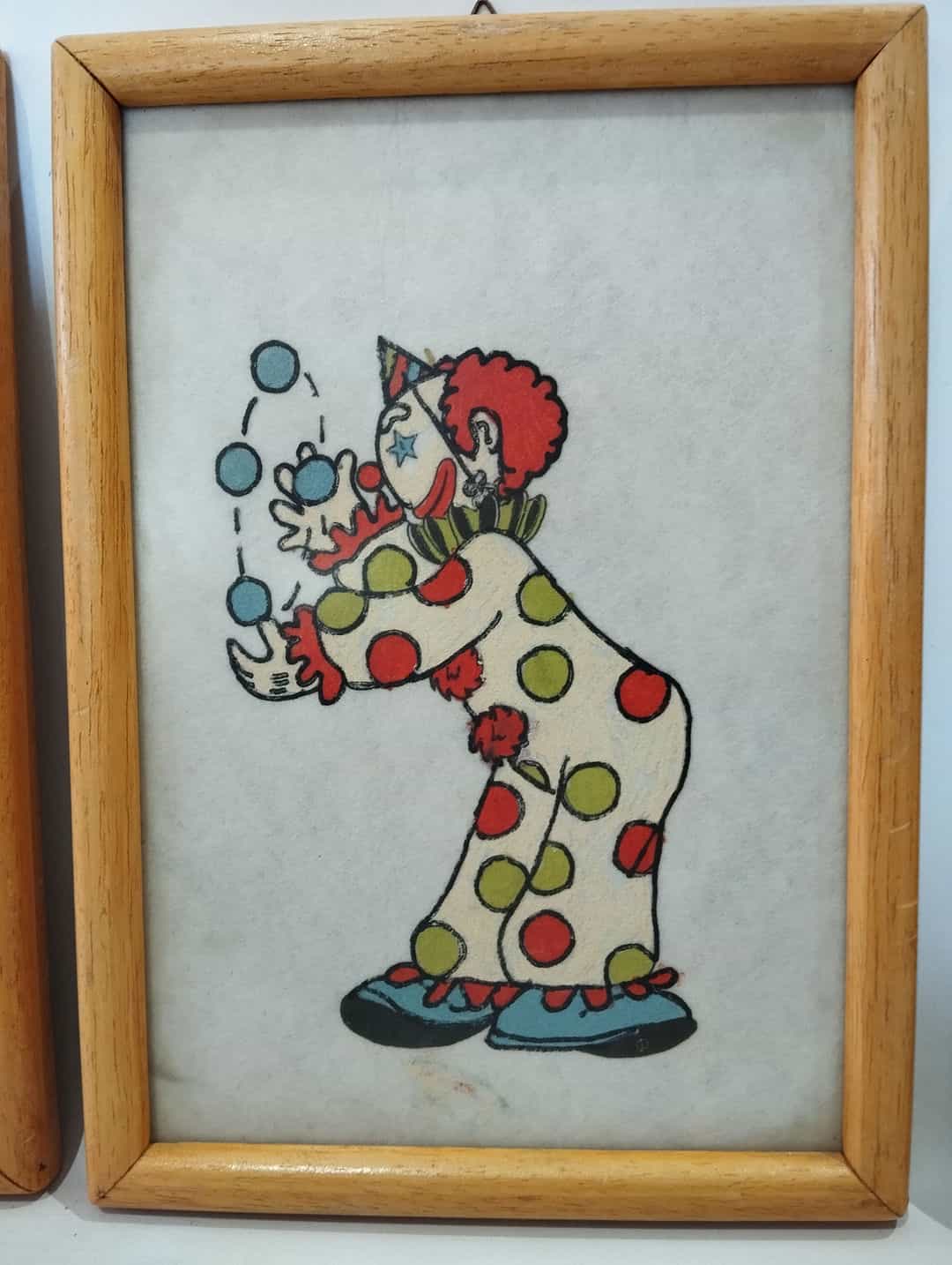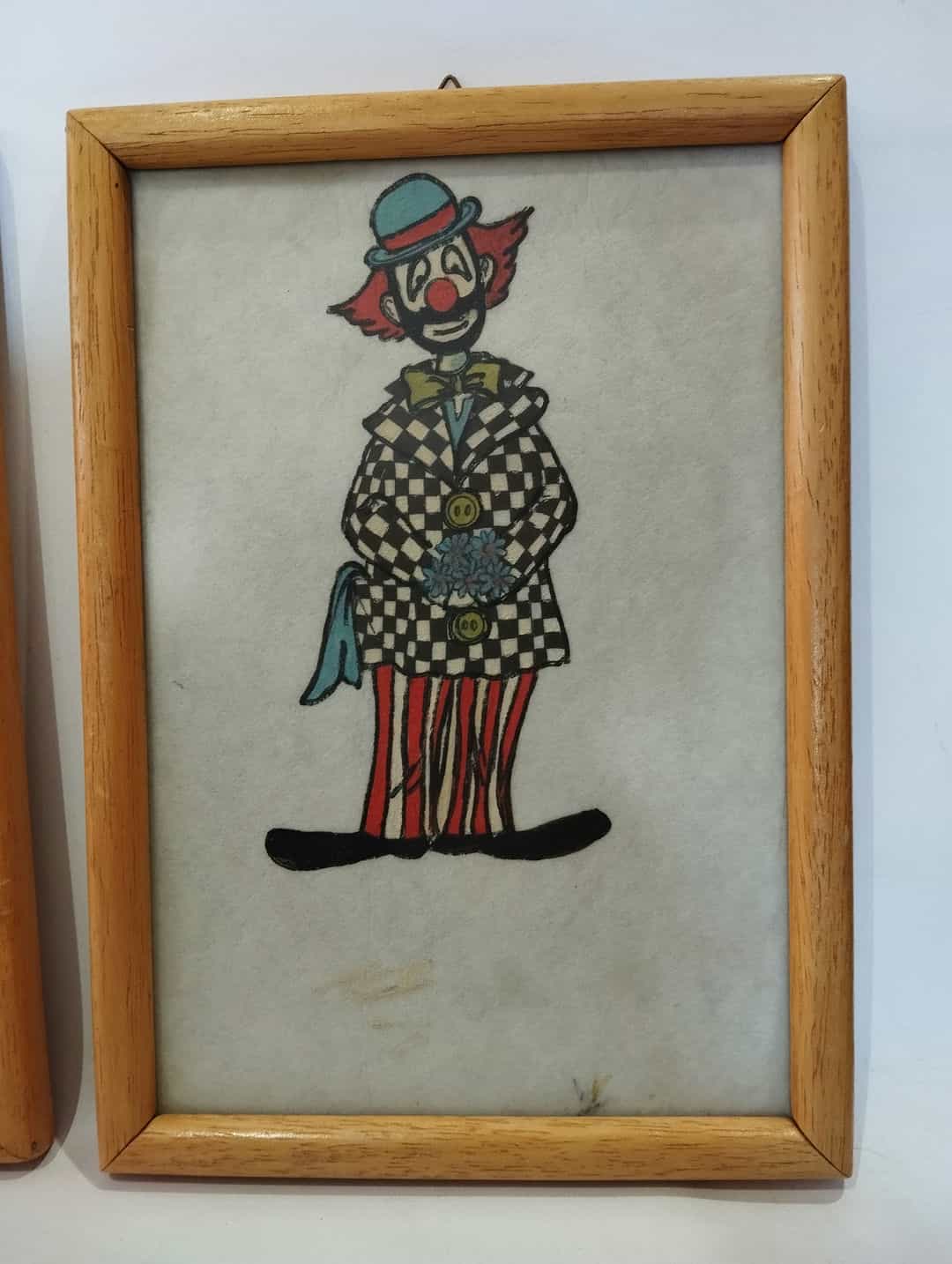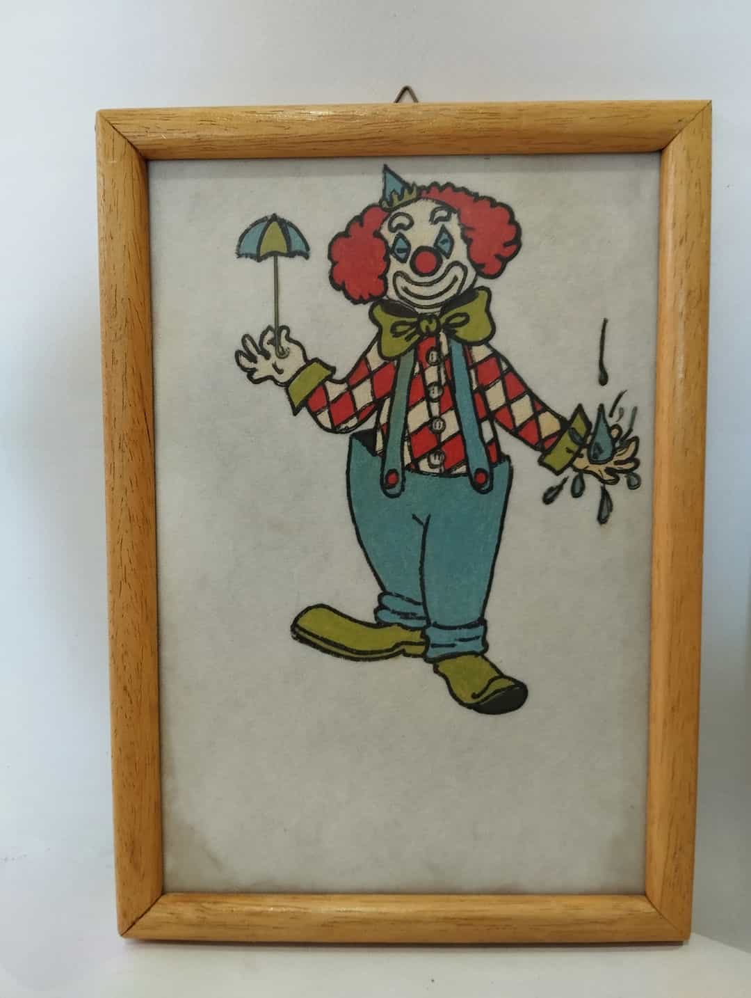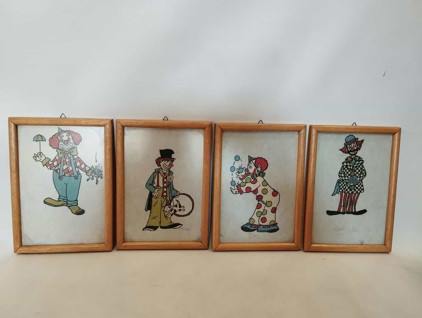 Vintage σετ 4 καδράκια τοίχου ζωγραφισμένα στο χέρι με απεικόνιση κλόουν 26×18