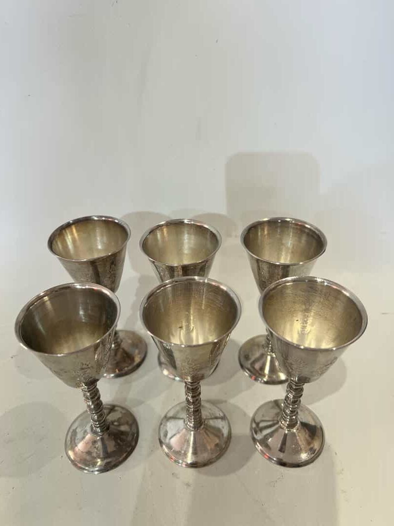 Vintage σετ 6 επάργυρα ποτήρια για λικέρ 11×5