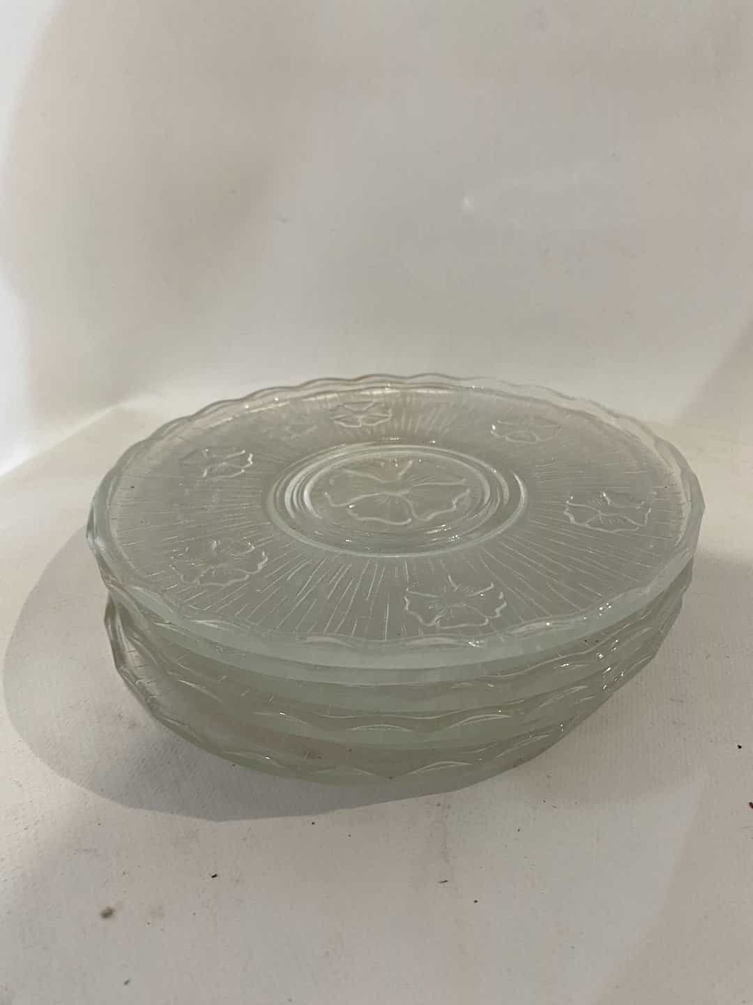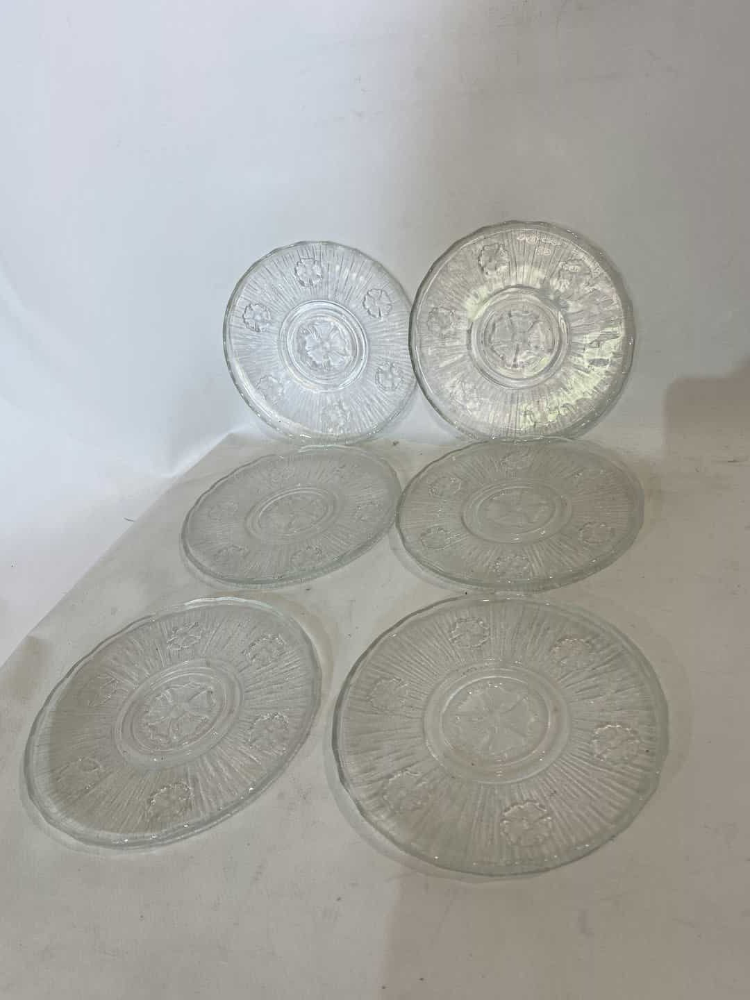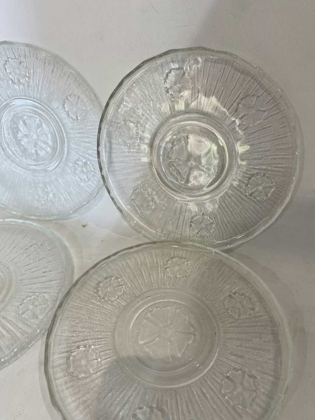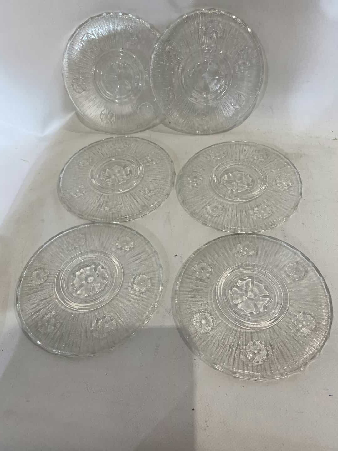 Vintage σετ 6 κρυστάλλινα πιάτα γλυκού με ανάγλυφα σχέδια λουλουδιών 17εκ Κωδικός προϊόντος: #s12874
