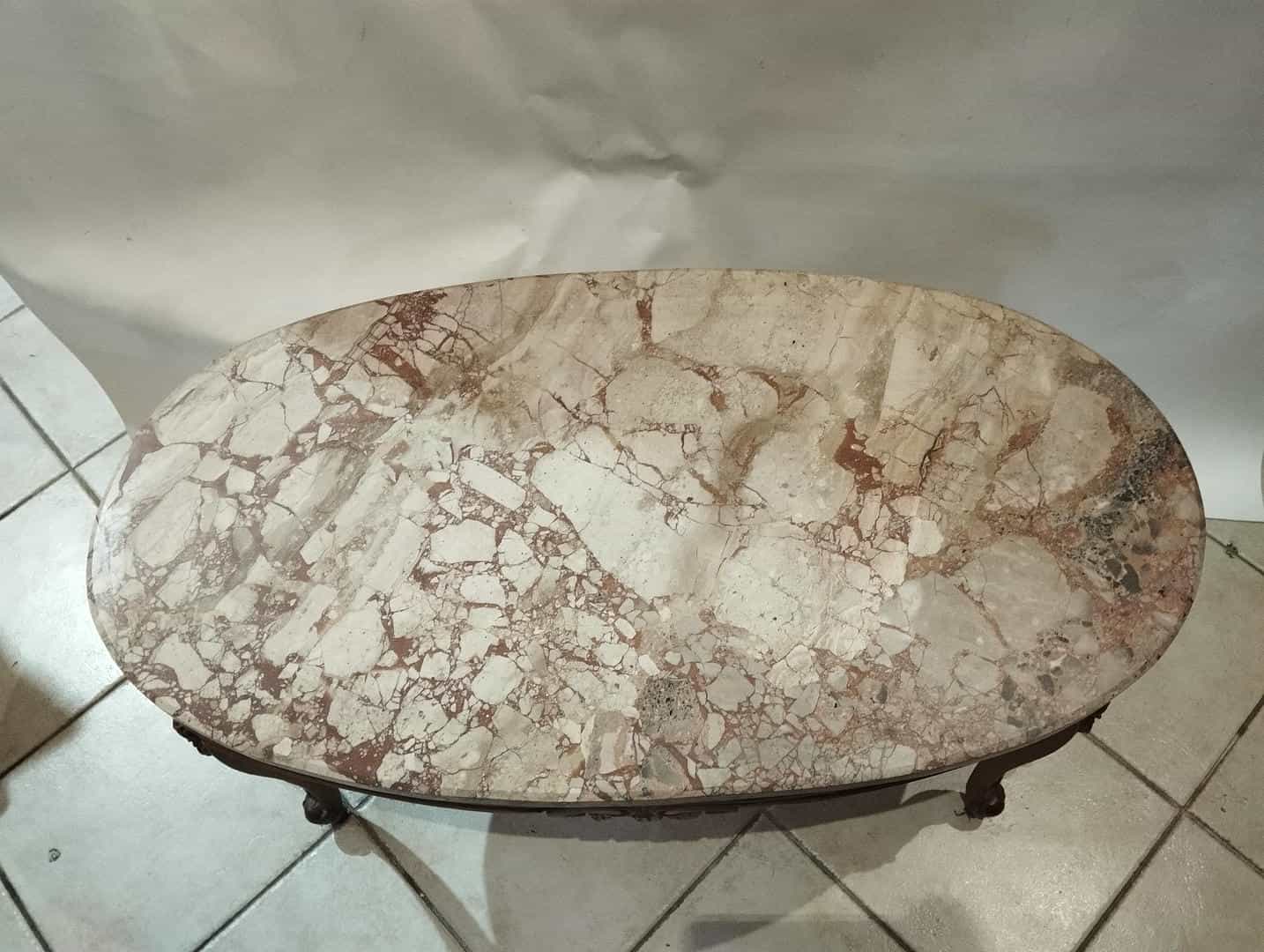 Vintage τραπέζι σαλονιού σε στυλ Louis XV με μαρμάρινη επιφάνεια 45,5×95,5×52,5