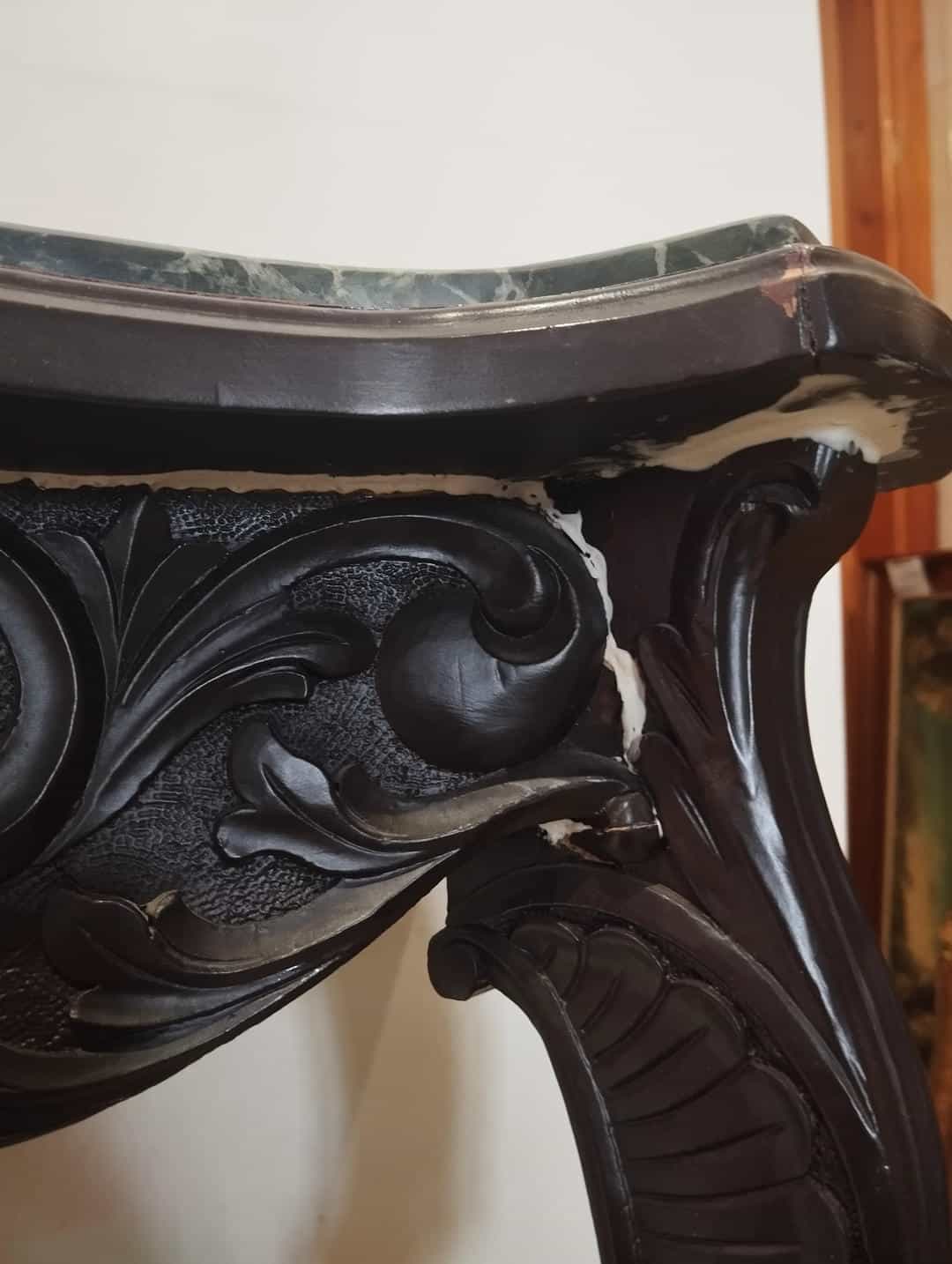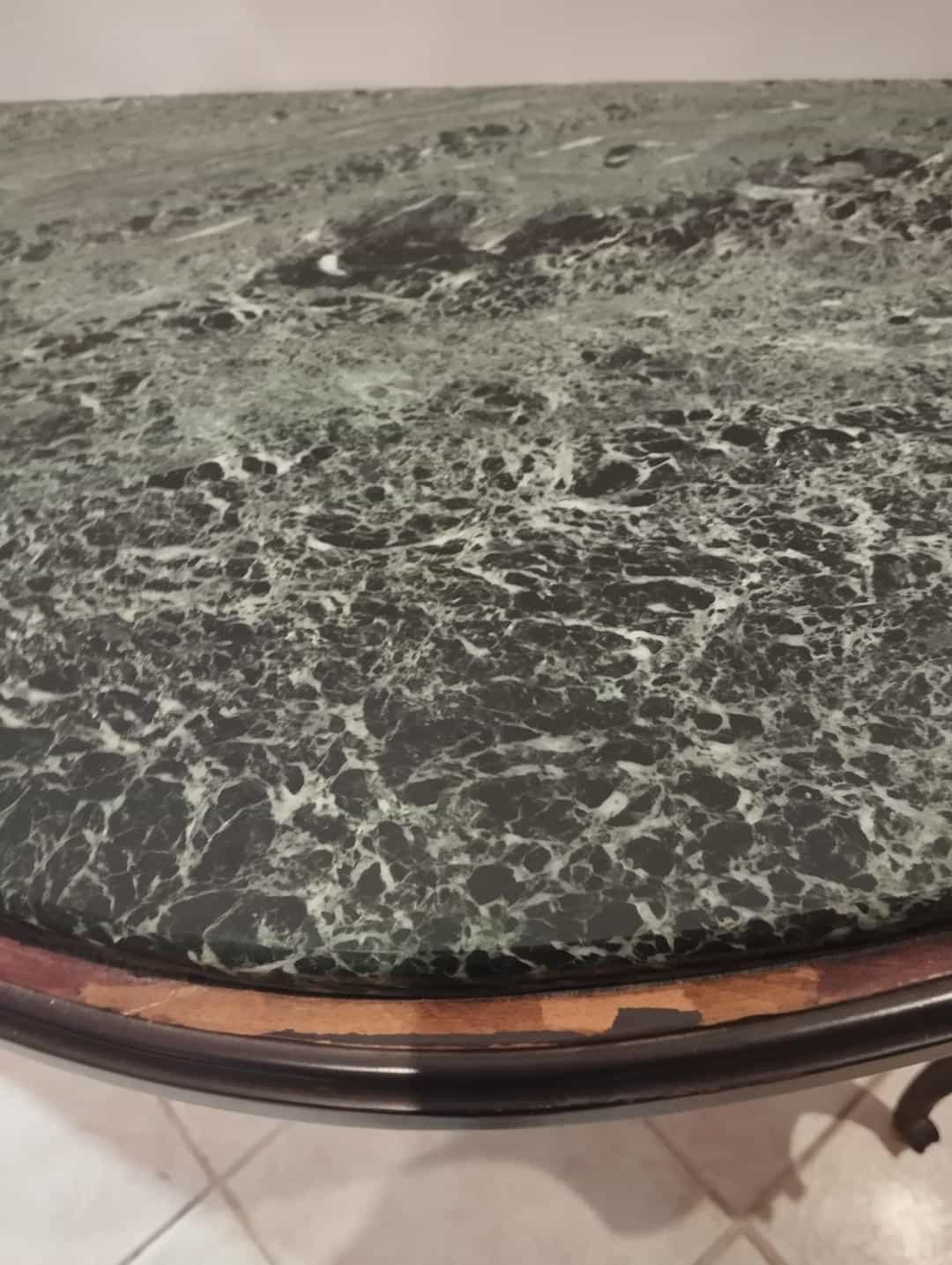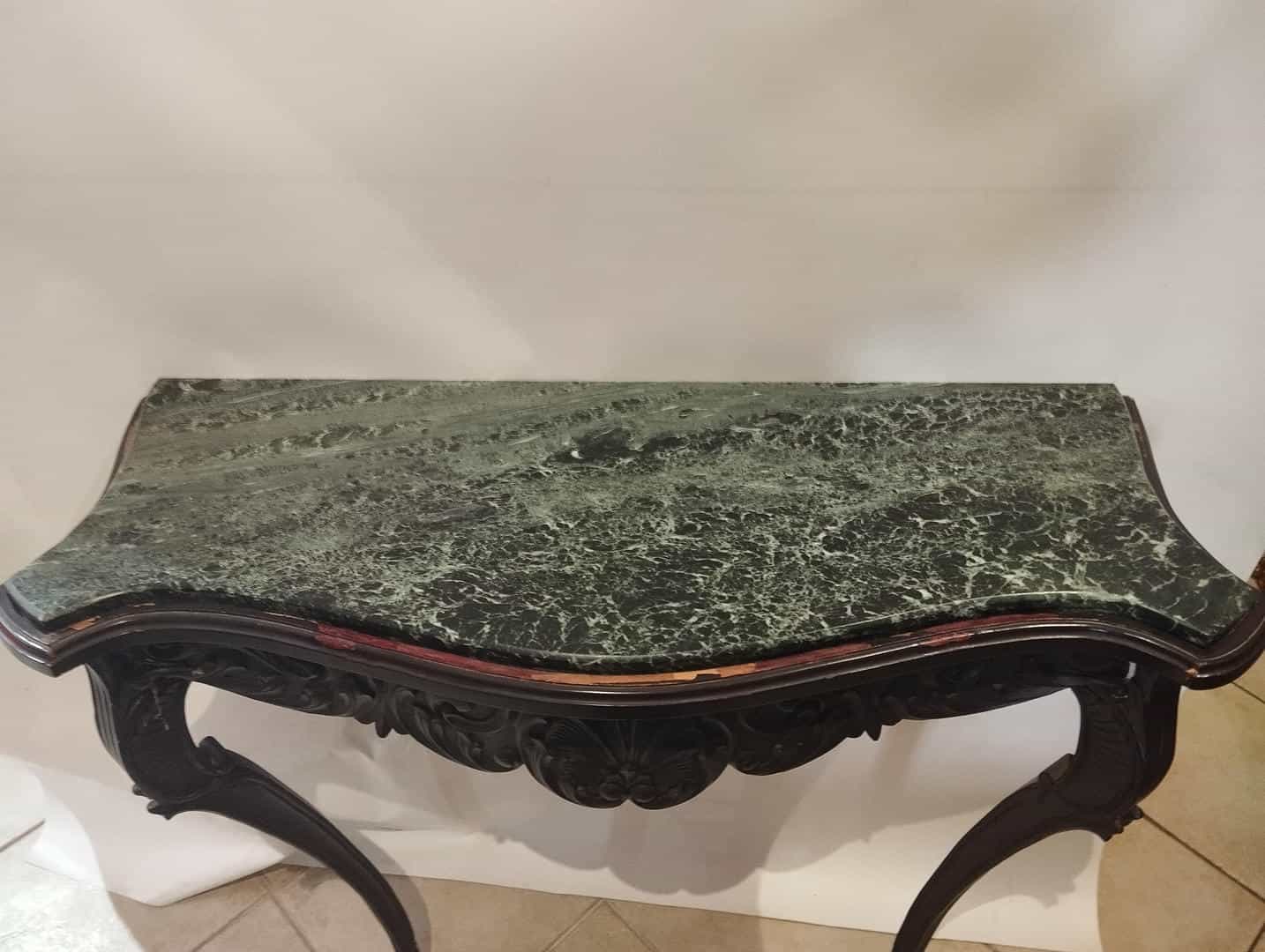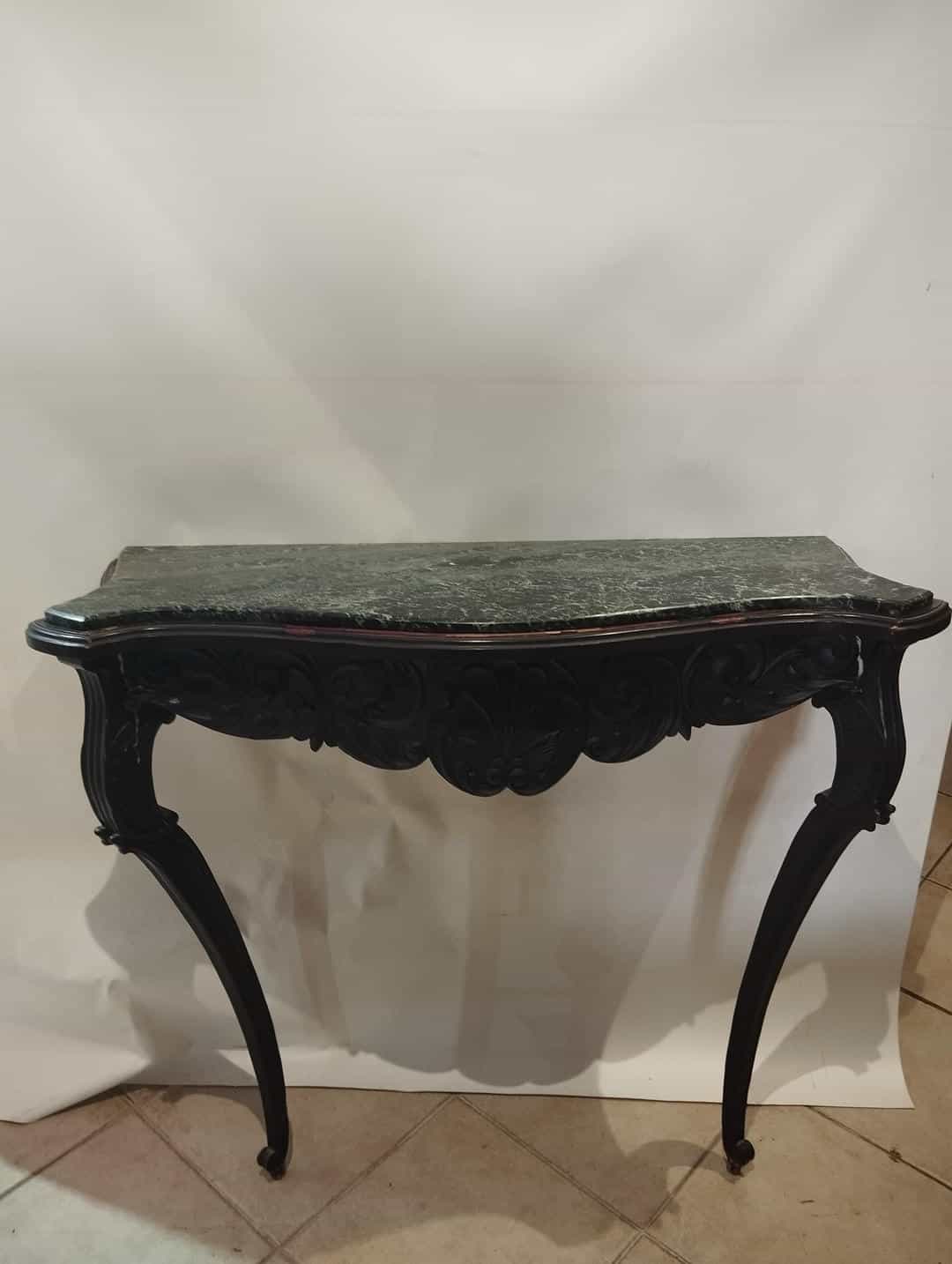 Vintage τραπεζάκι τοίχου με σκαλιστά ξύλινα ποδαράκια και μαρμάρινη επιφάνεια 87x98x38