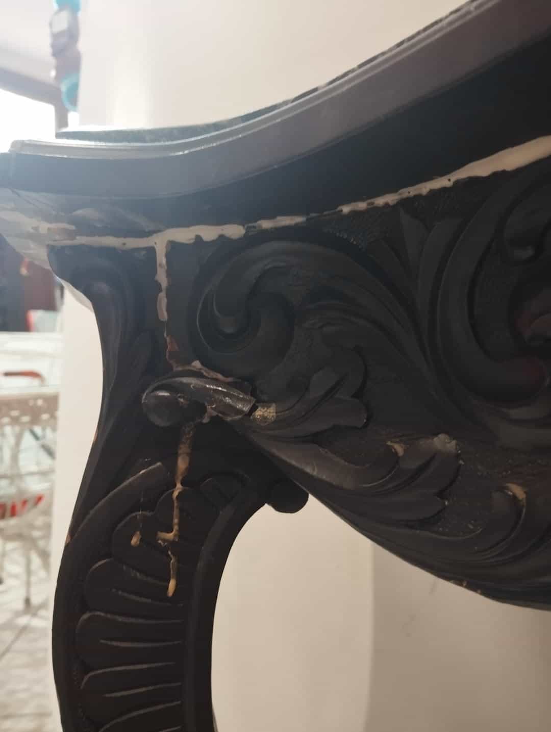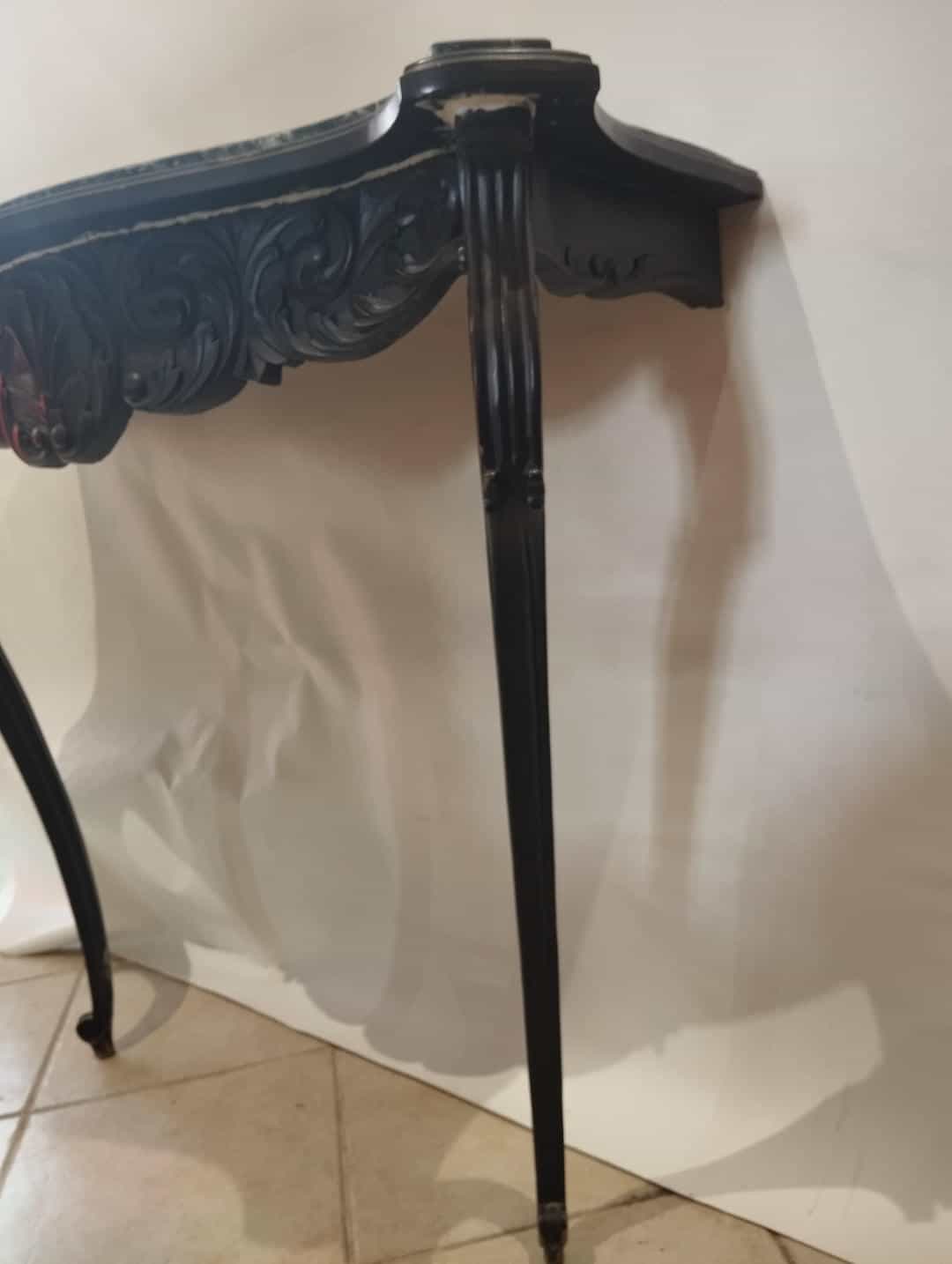 Vintage τραπεζάκι τοίχου με σκαλιστά ξύλινα ποδαράκια και μαρμάρινη επιφάνεια 87x98x38 Δεν στέκεται μόνο του Κωδικός προϊόντος: #s16582