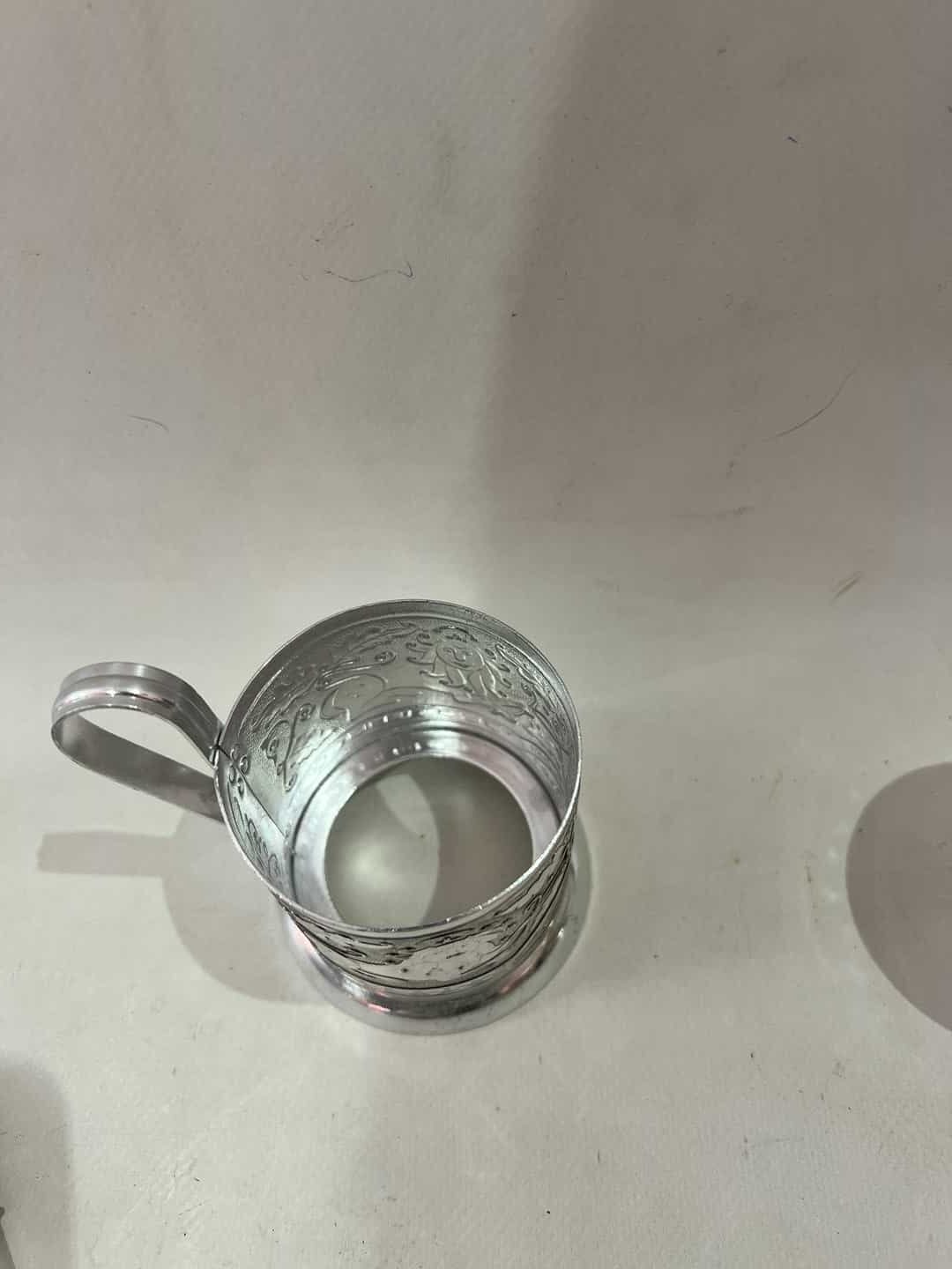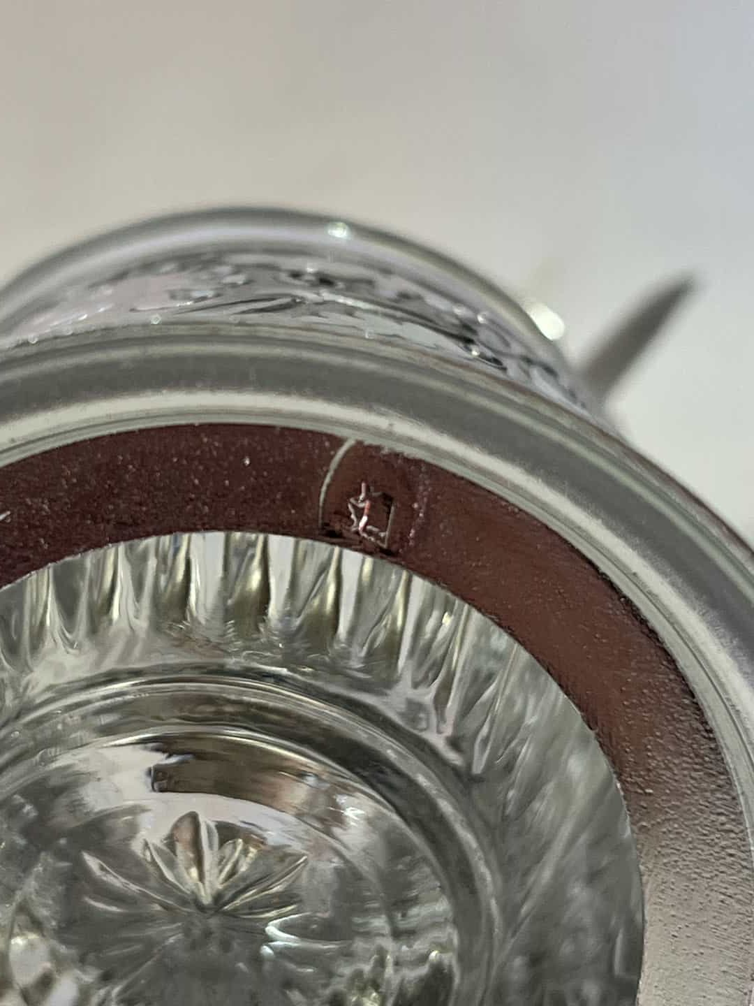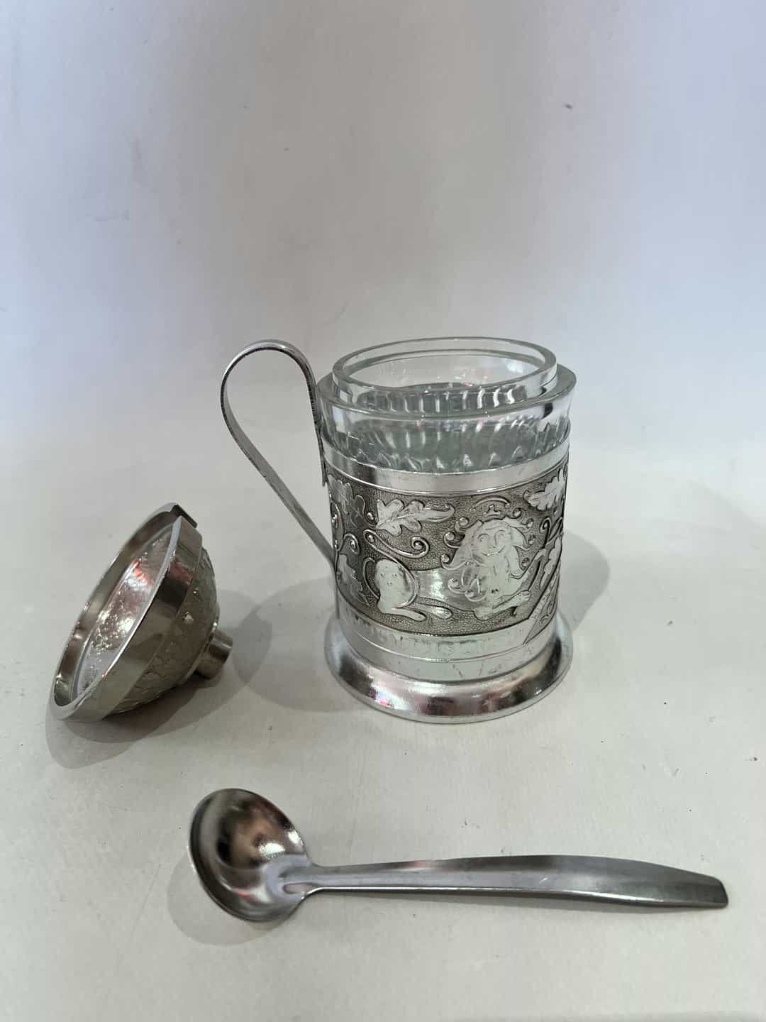 Vintage υποστύρωμα ποτηριού με ενσωματωμένο γυάλινο ποτήρι και καπάκι 12,5x10x8 Υπάρχει ράγισμα στο ποτήρι  Κωδικός προϊόντος: #s16843