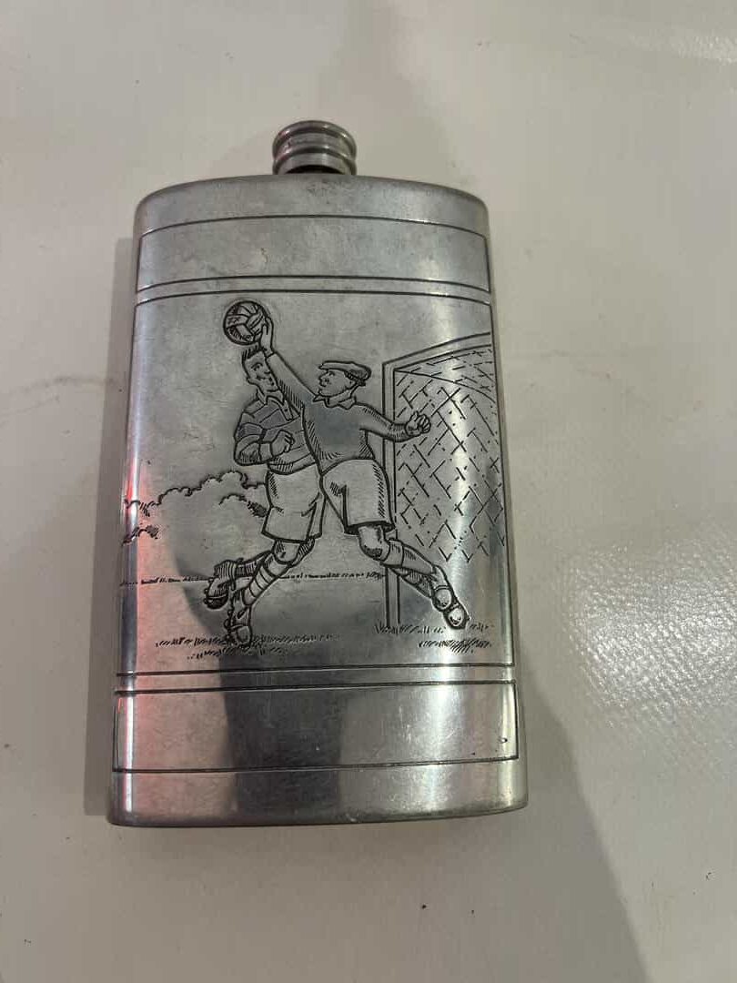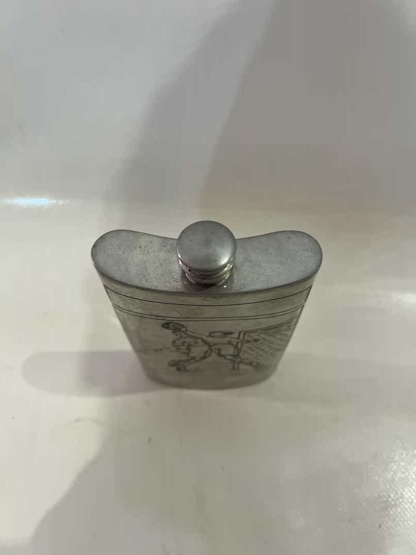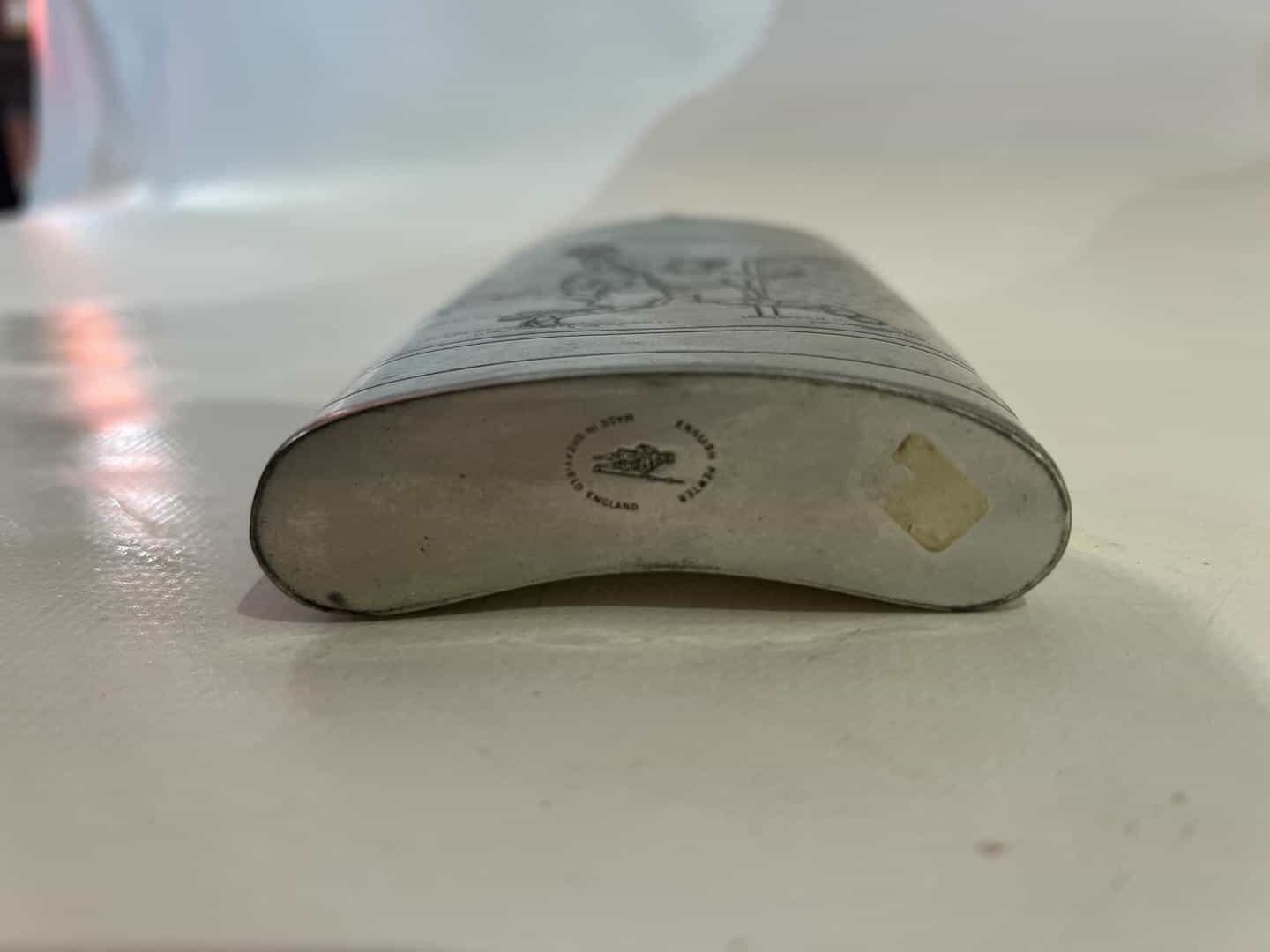 Vintage φλασκί Κασσιτέρου με σκαλιστές παραστάσεις ENGLISH PEWTER 14,5×8,5 Κωδικός προϊόντος: #s15460