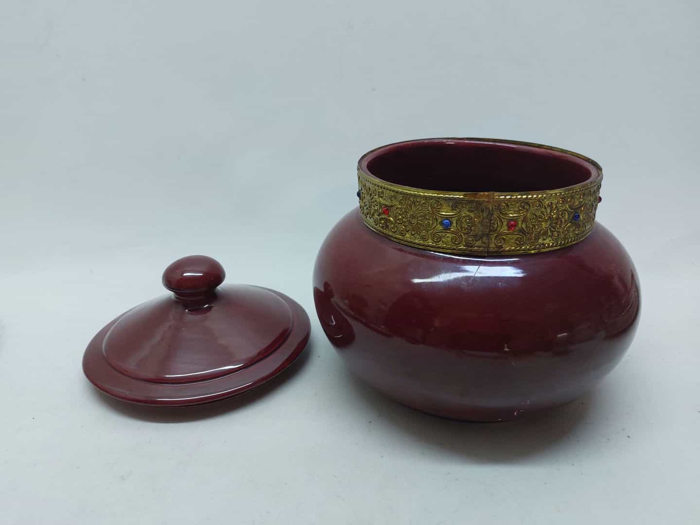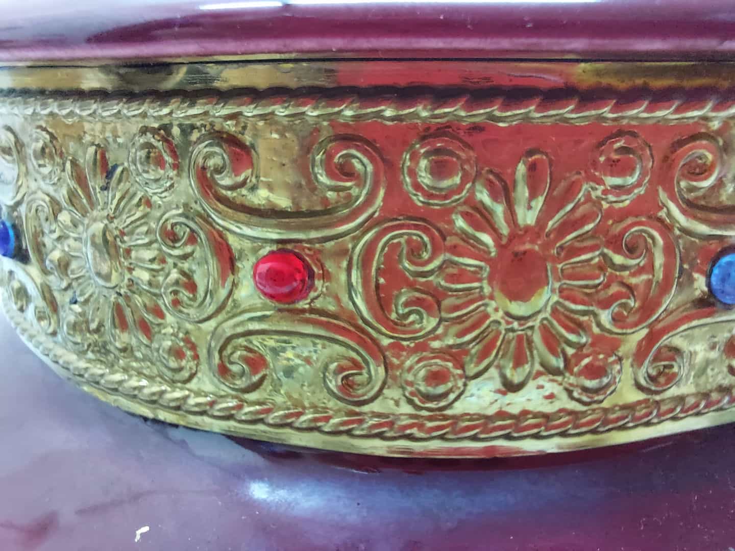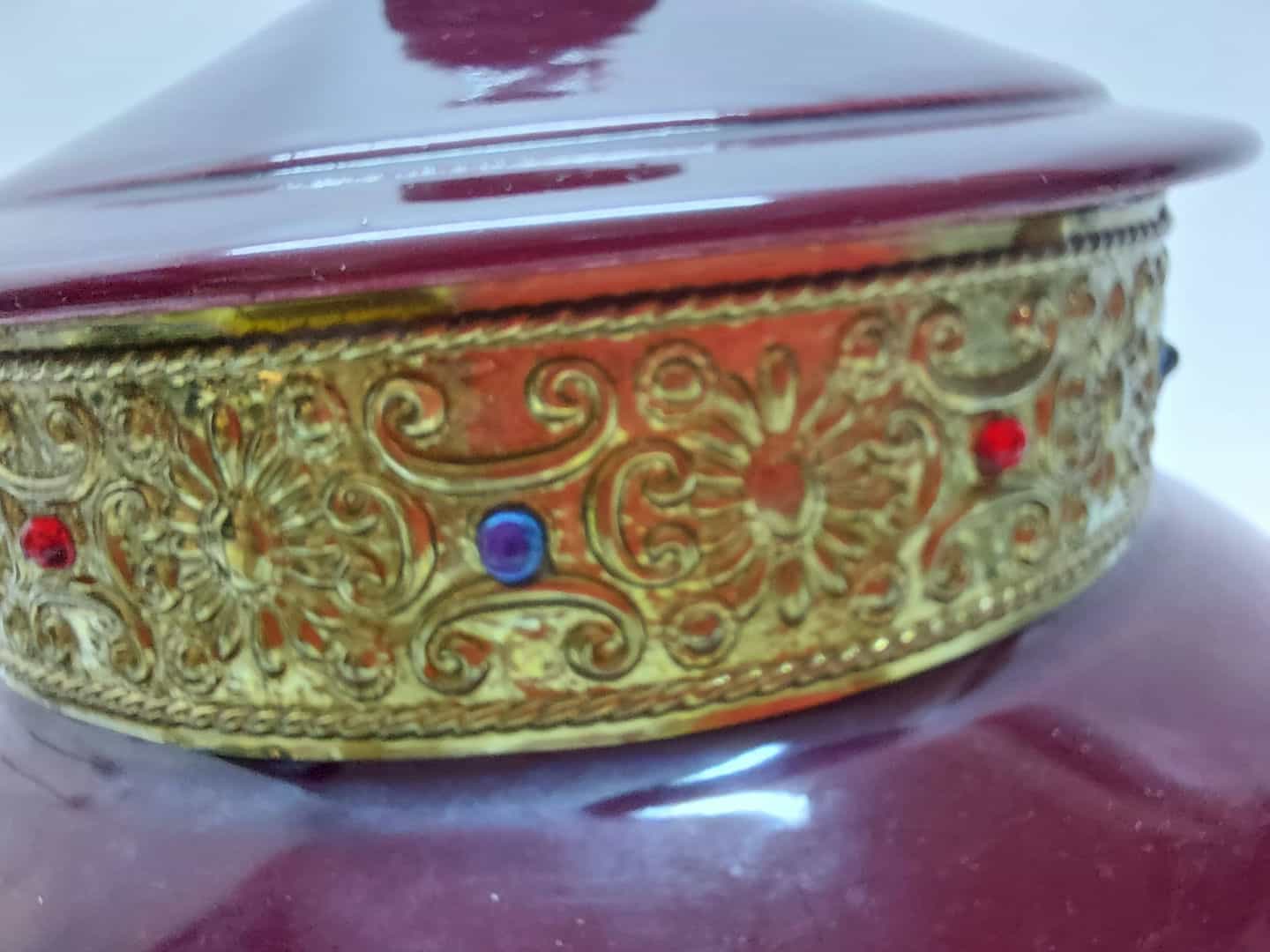 Vintage φοντανιέρα μπορντό με χρυσή λεπτομέρεια και χρωματιστές πετρούλες 20x18cm
