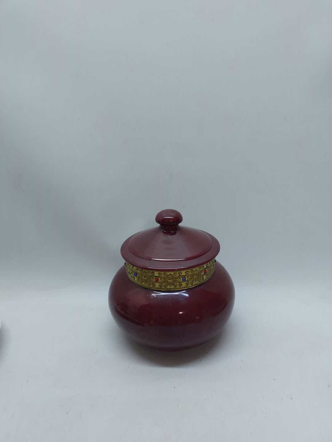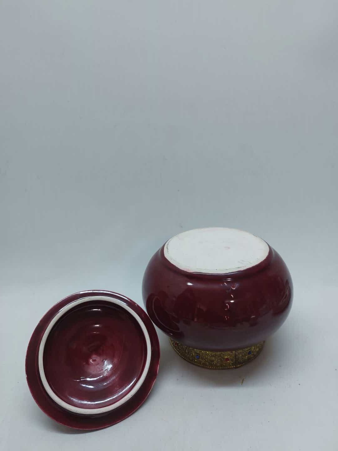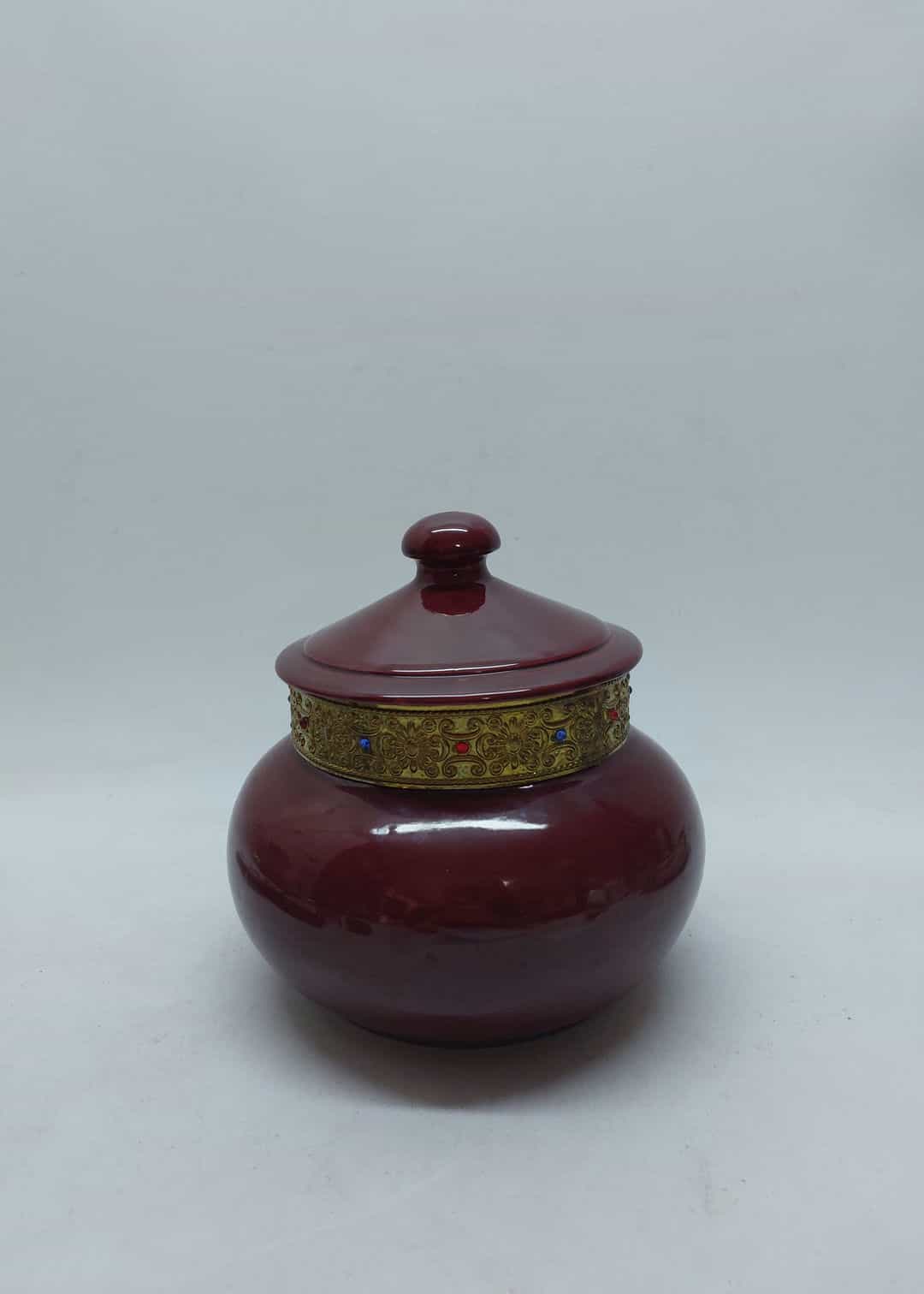 Vintage φοντανιέρα μπορντό με χρυσή λεπτομέρεια και χρωματιστές πετρούλες 20x18cm