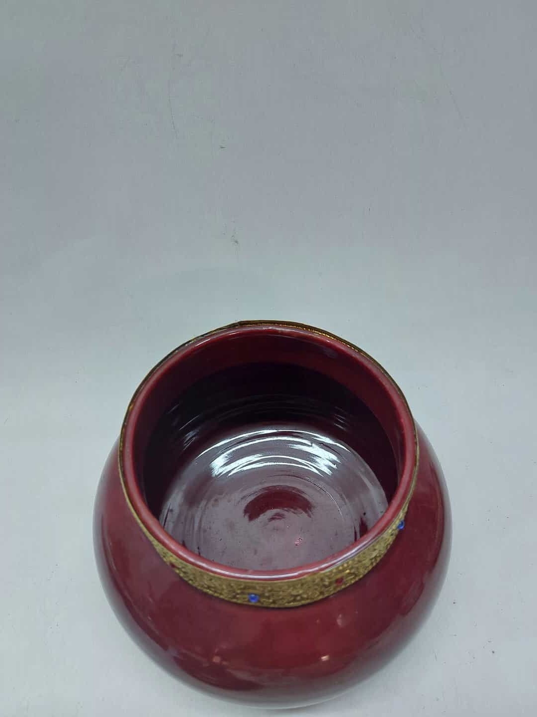 Vintage φοντανιέρα μπορντό με χρυσή λεπτομέρεια και χρωματιστές πετρούλες 20x18cm. Υπάρχει μικρό ελάττωμα στο χρώμα του, όπως φαίνεται στις φωτογραφίες Κωδικός προϊόντος: #s5322