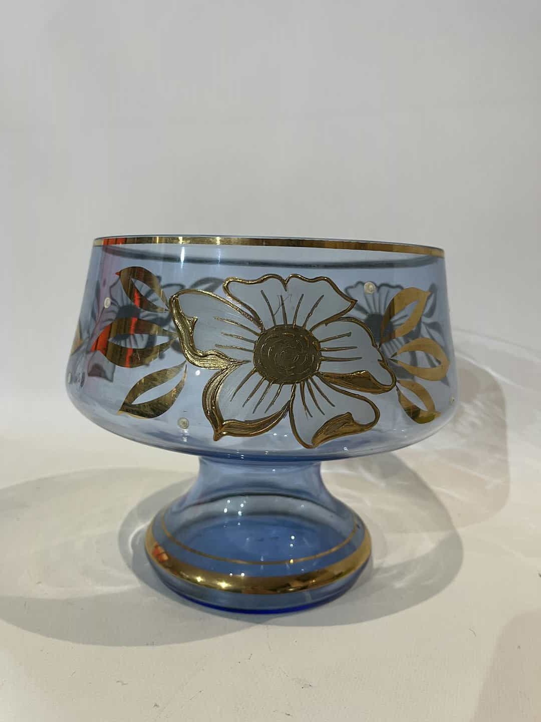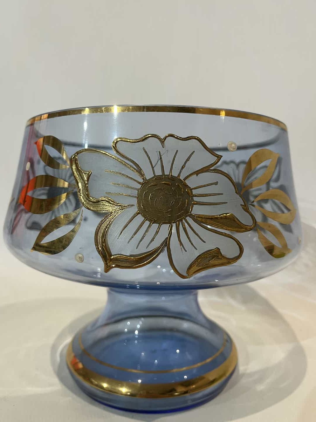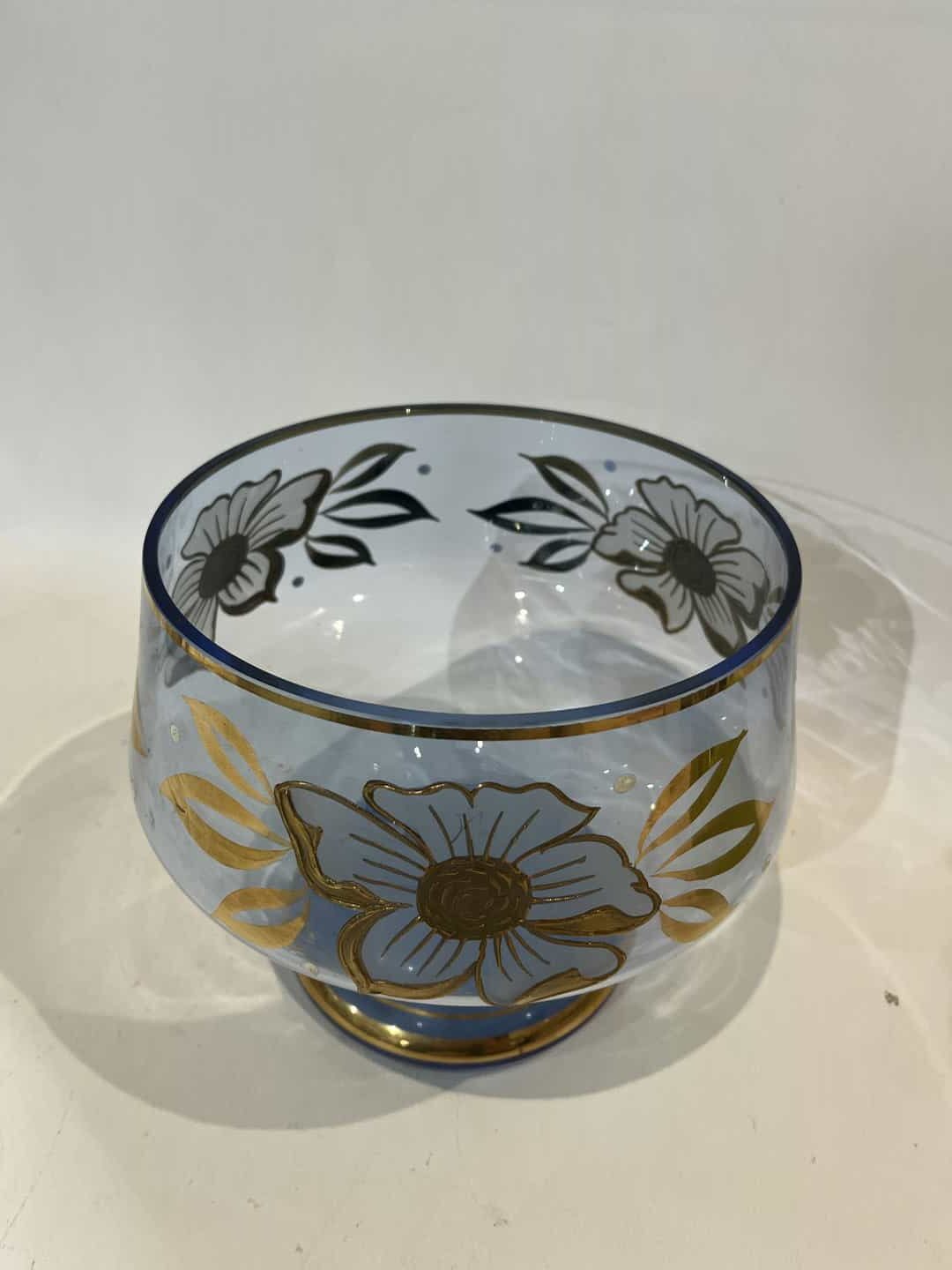 Vintage φοντανιέρα Quazar Art Glass , με ζωγραφισμένα λουλούδια 17×18 Κωδικός προϊόντος: #s14684