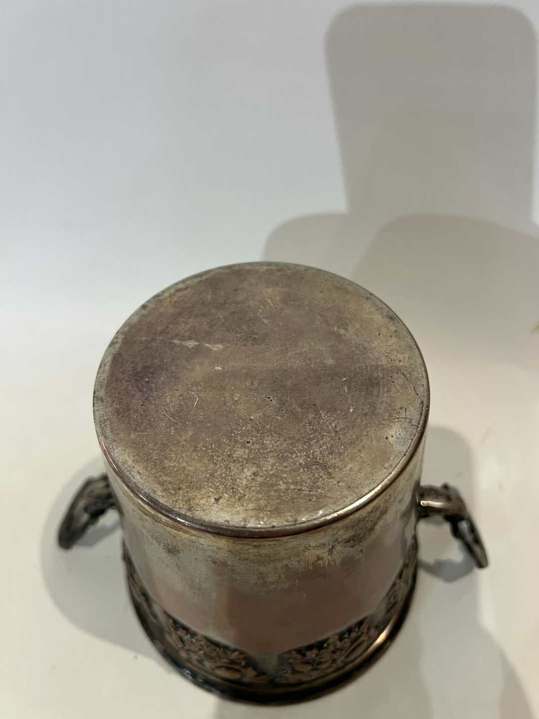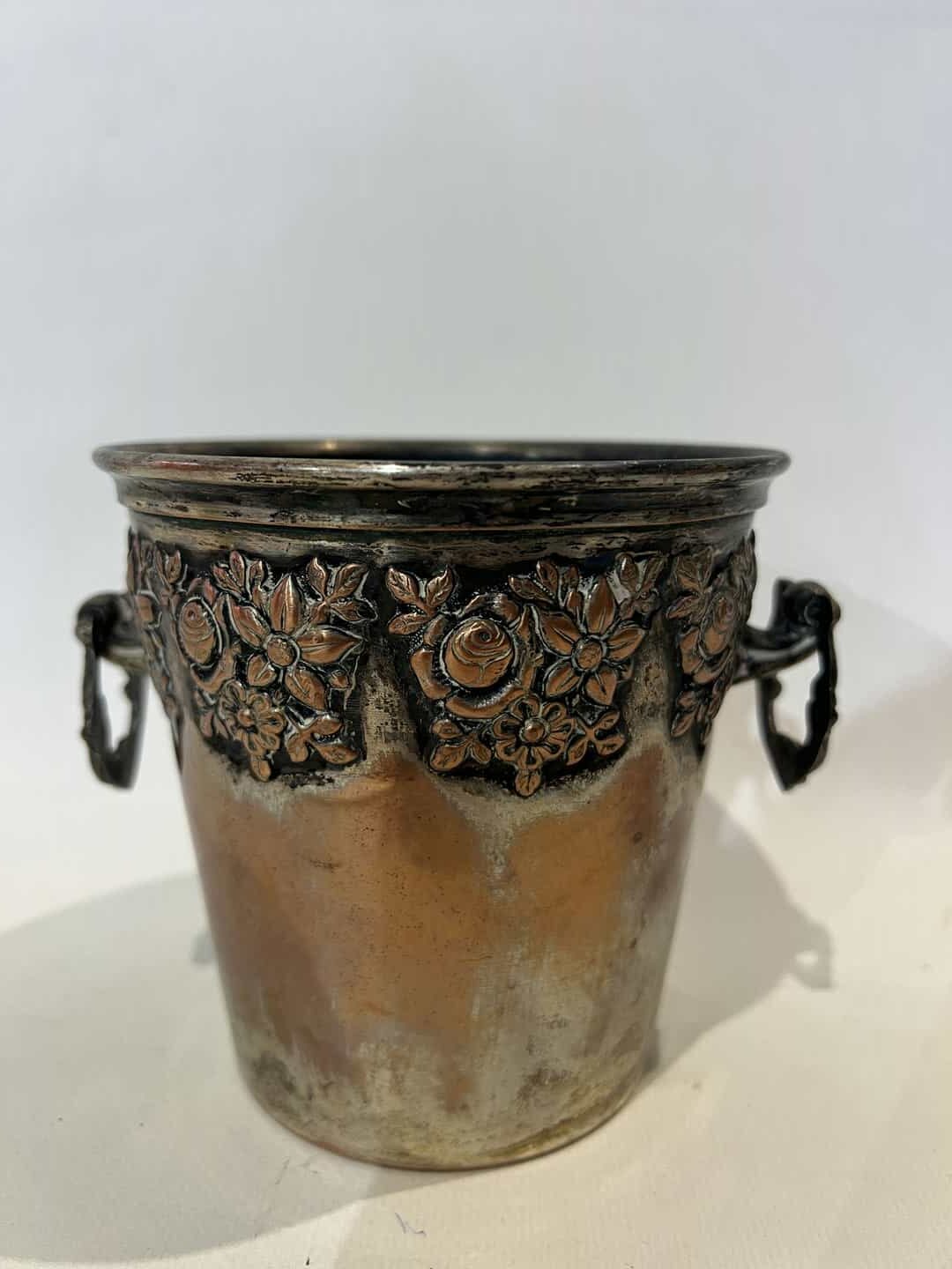 Vintage χάλκινη παγοθήκη με ανάγλυφα σχέδια και λαβές 11,5×15 Κωδικός προϊόντος: #s15863