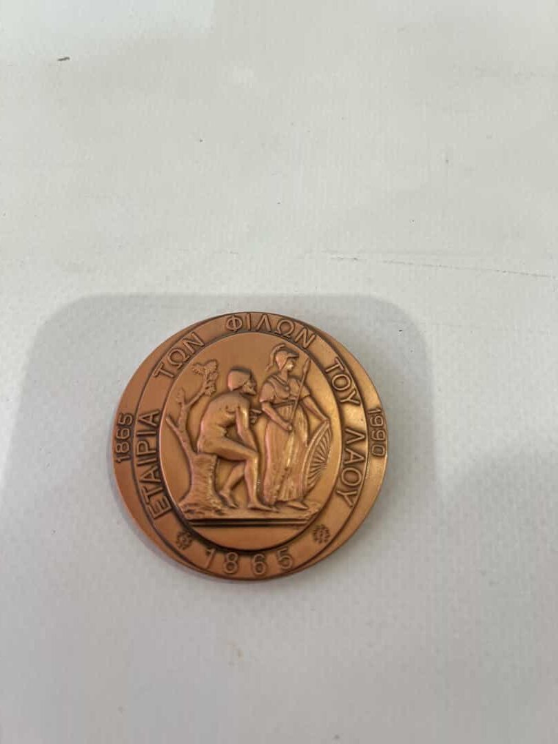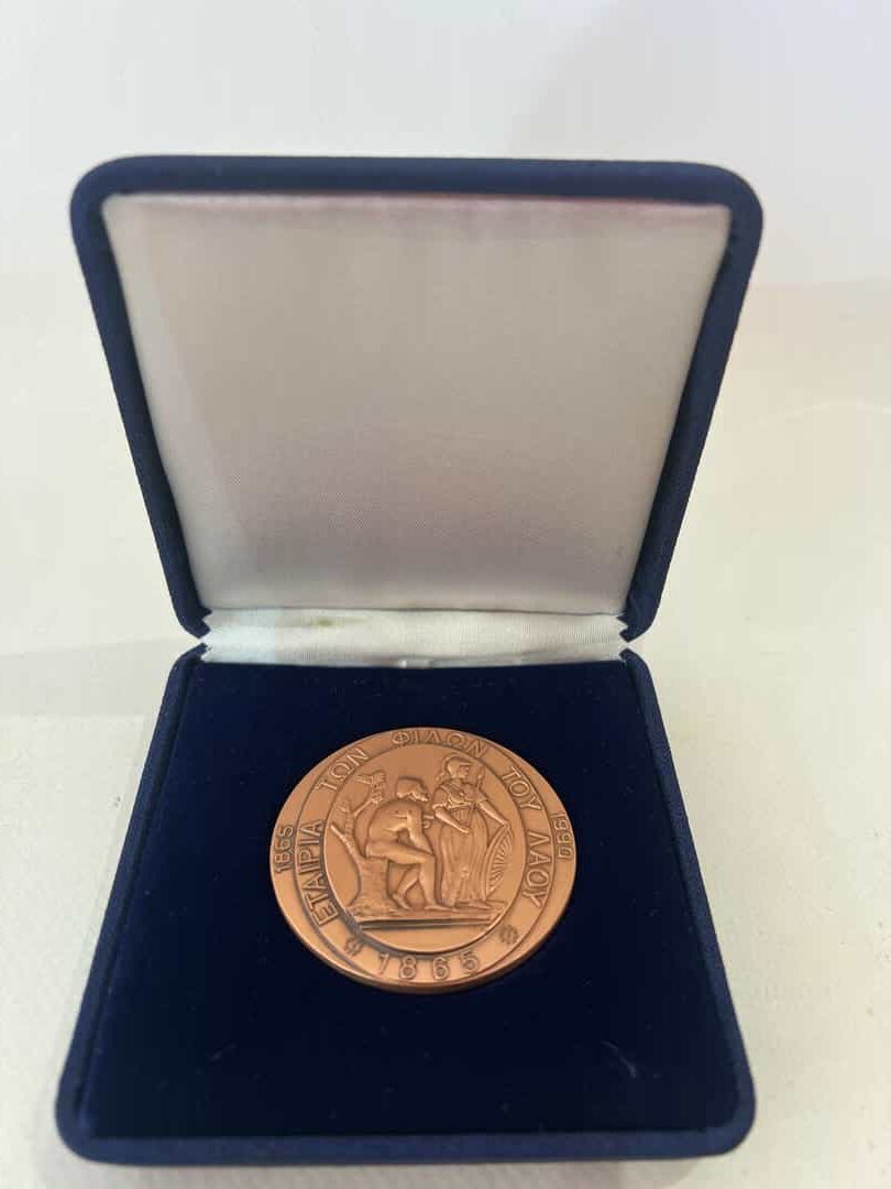 Vintage χάλκινο αναμνηστικό μετάλλιο Εταιρεία των Φίλων του Λαού 1990 Α.Σούτζος  Κωδικός προϊόντος: #s15539